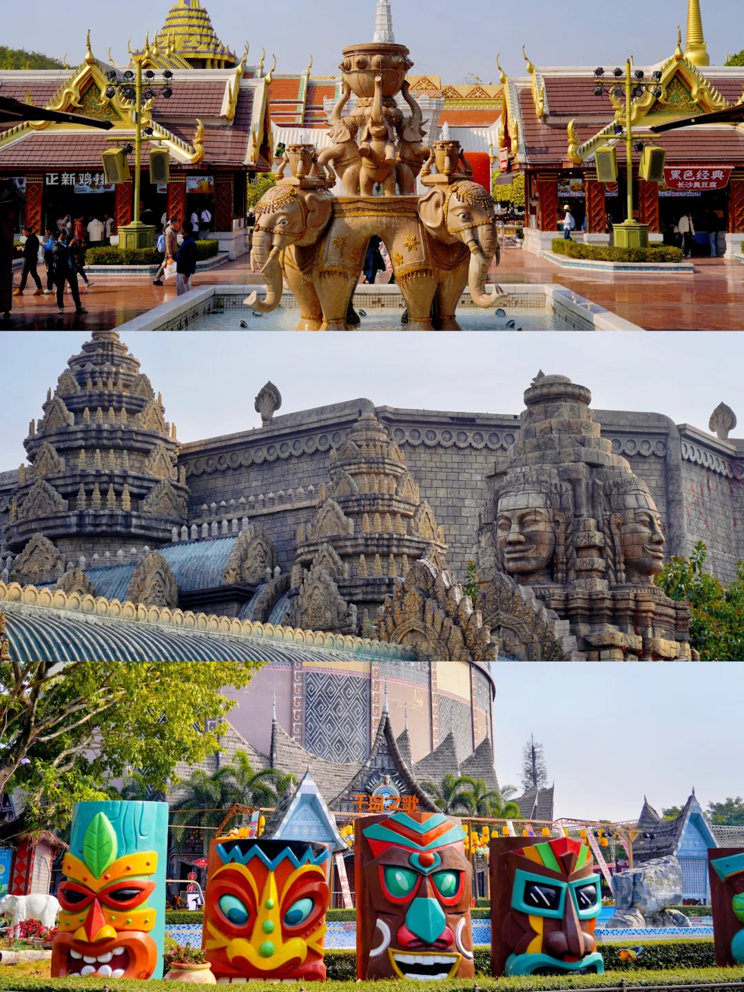 巴厘岛天空之门、柬埔寨吴哥窟、新加坡鱼尾狮、泰国大皇宫……