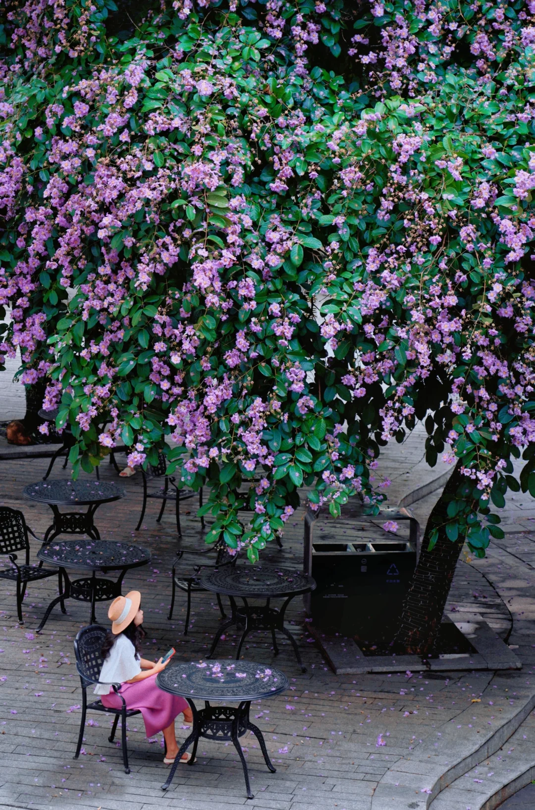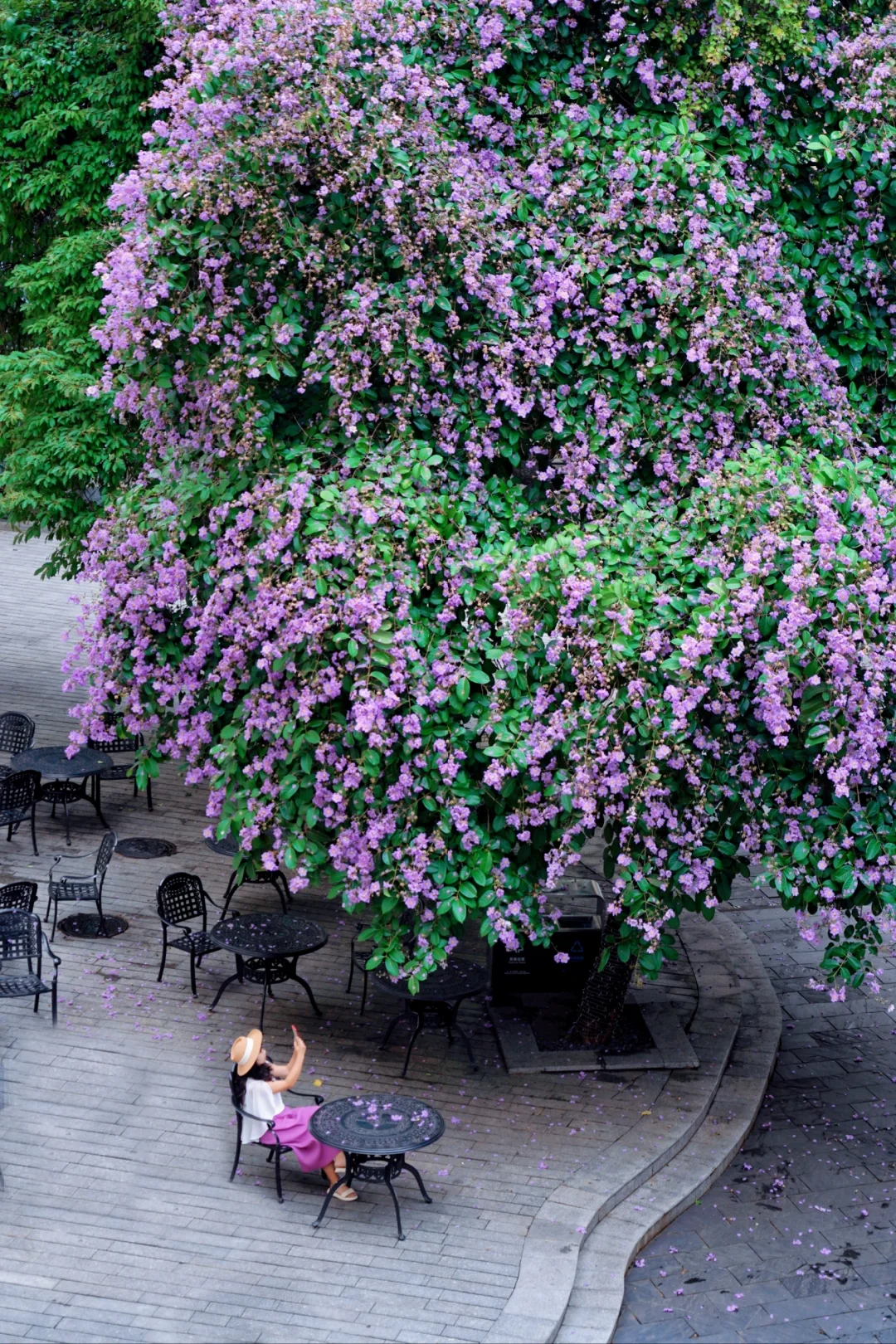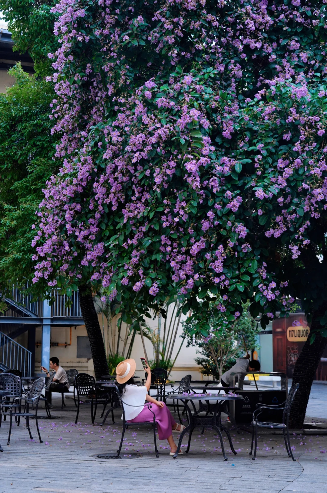 花城广州总是让我惊喜不断 春、夏、秋、冬追不完花 赏不尽的美景 这两天又被这棵大叶紫薇惊艳到了 满树繁花像瀑布一般 偶有花瓣随风吹落 就算是雨天☔️也很美 - 📍位置:惹味茶餐厅里面 🚇交通:越秀公园C口步行约5、6分钟 📸拍摄小tips:周边有楼梯可以爬楼拍摄,从楼上俯拍更能拍出瀑布般的花海