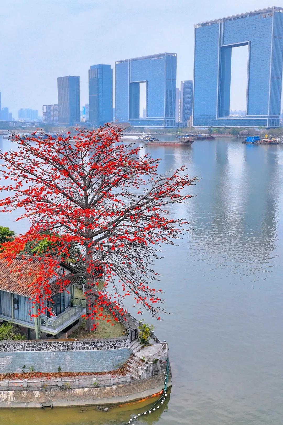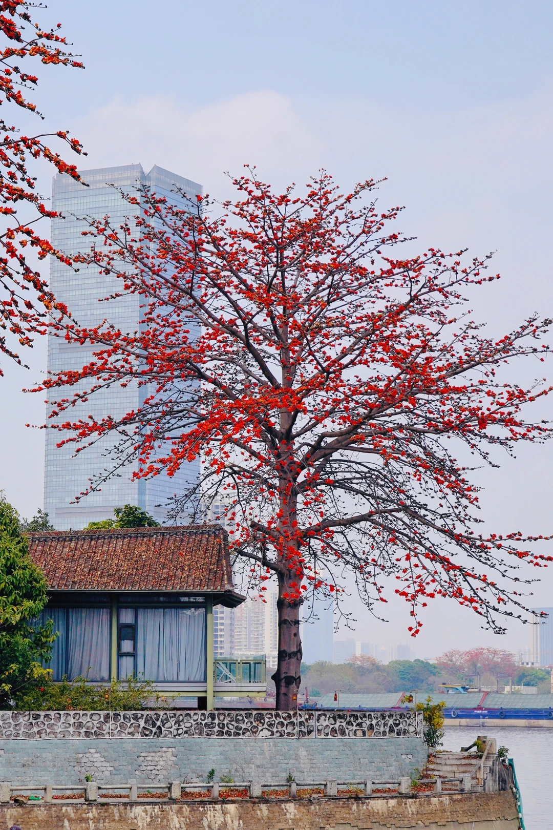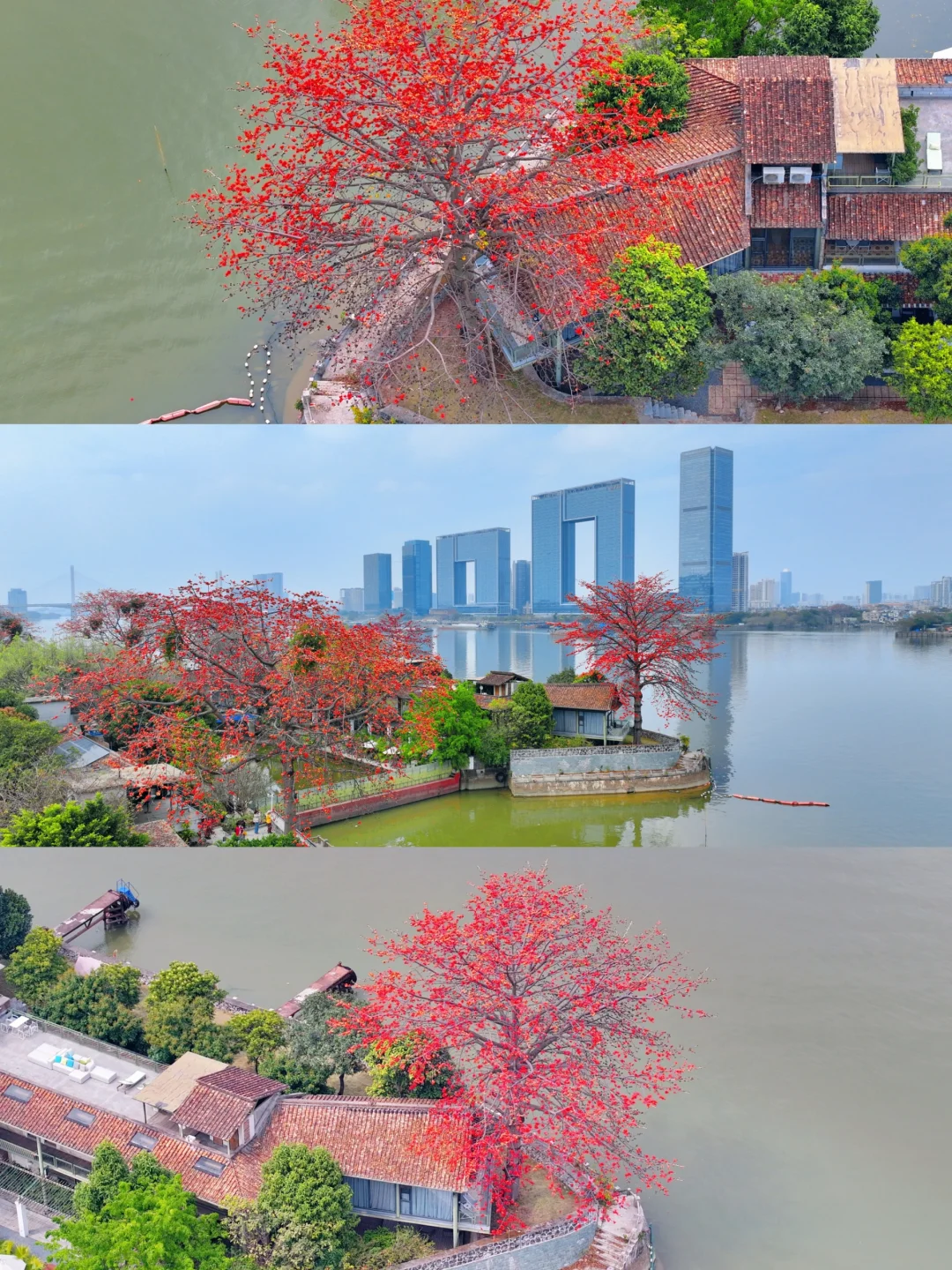 “奇花灿熳半天中,天上云霞相映红。” 广州赏木棉花,上滘船厂江边的木棉花应当占有一席之地 珠江边的老船厂自带怀旧氛围感 火红的木棉花与棕红色的瓦房顶形成了江边一道复古的风景线 远眺与一江相隔的广州之窗同框 又是另一幅别样的风景 - 📸游玩小tips ①、沿着江堤可以轻松拍全江边那棵高大的木棉花树,长焦镜头压缩背景,很适合拍人像 ②、这里很适合航拍,想练手的小伙伴就来这儿吧 ③、灯塔、江景……又能再拍一组日系风照,天气好的话,这儿的日落晚霞也是很赞 ④、图片是3.11实拍图,木棉花已到盛花期可以放心冲!晚些时候木棉花落下铺满屋顶也很美 - ️📍定位:上滘船厂/喜临院 🚇地铁:3号线厦滘A出口,步行约15分钟
