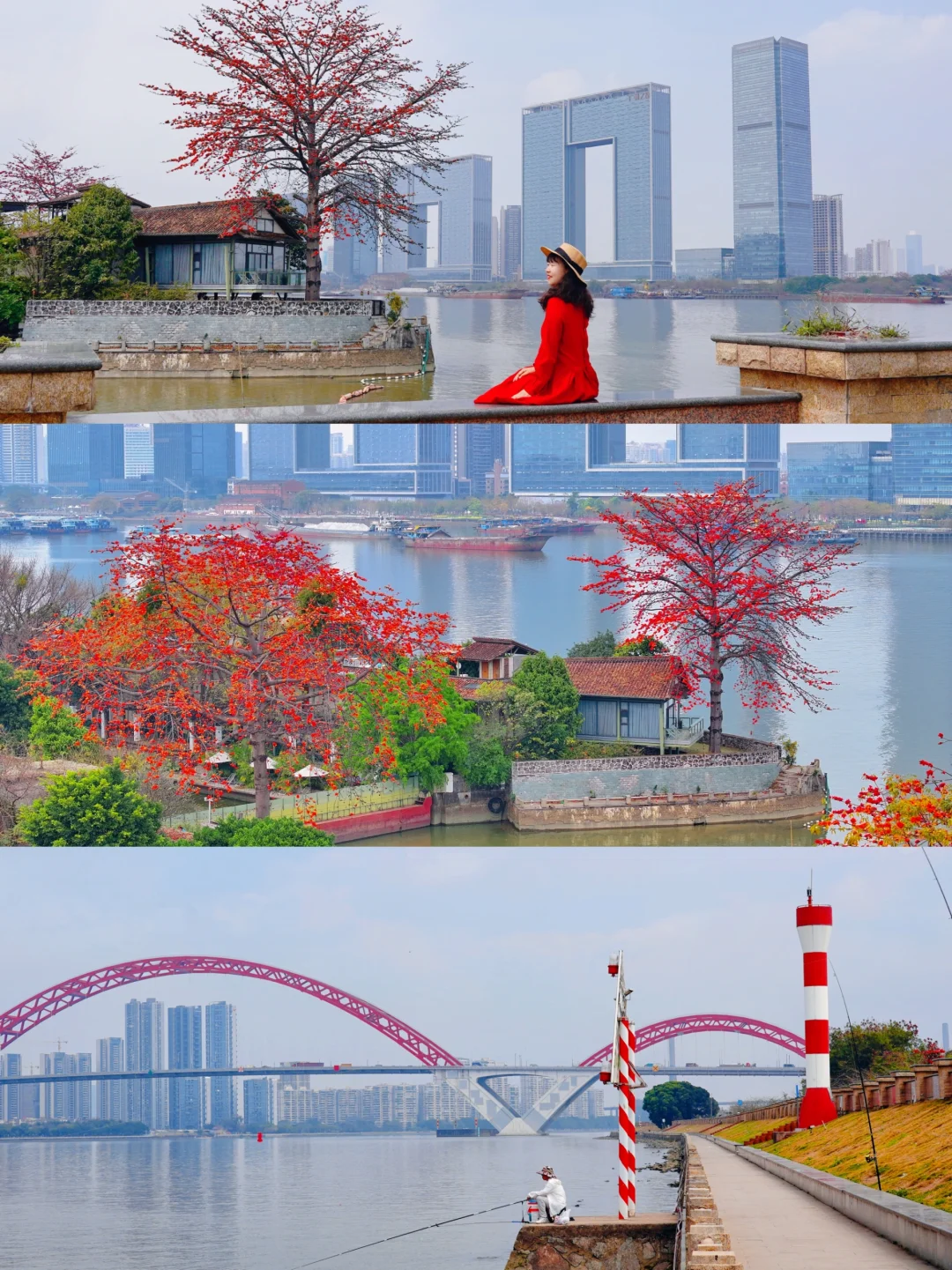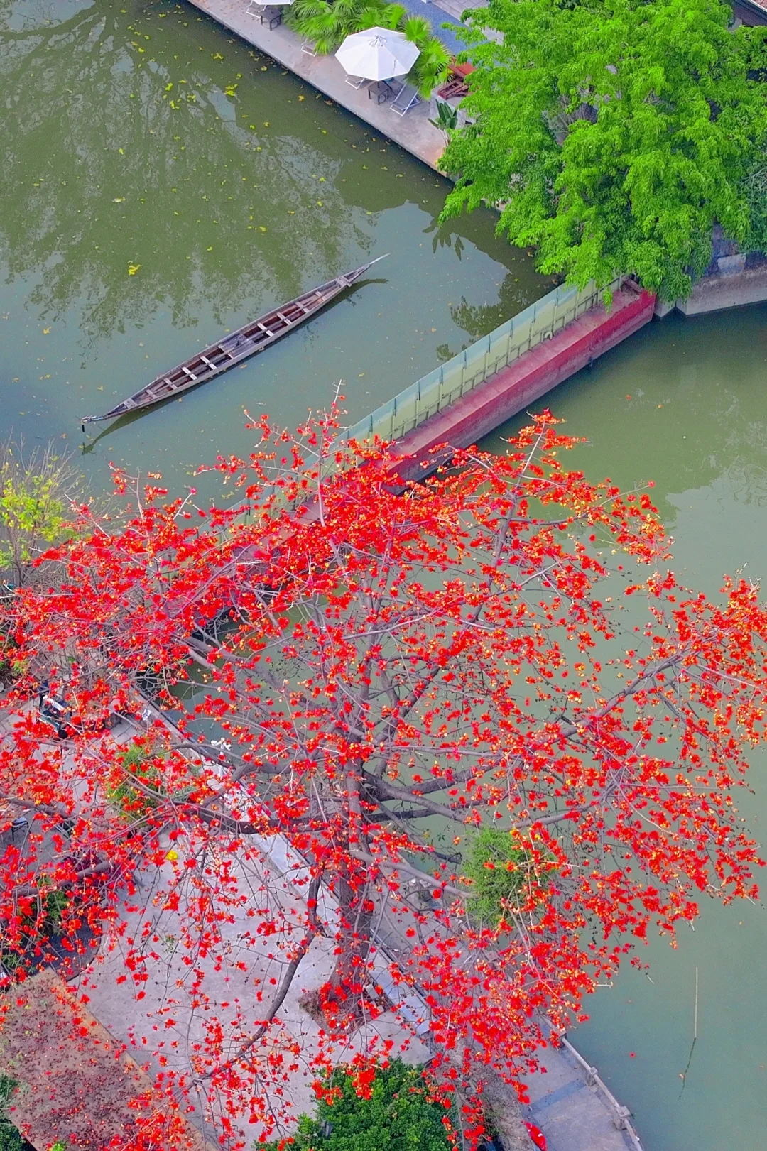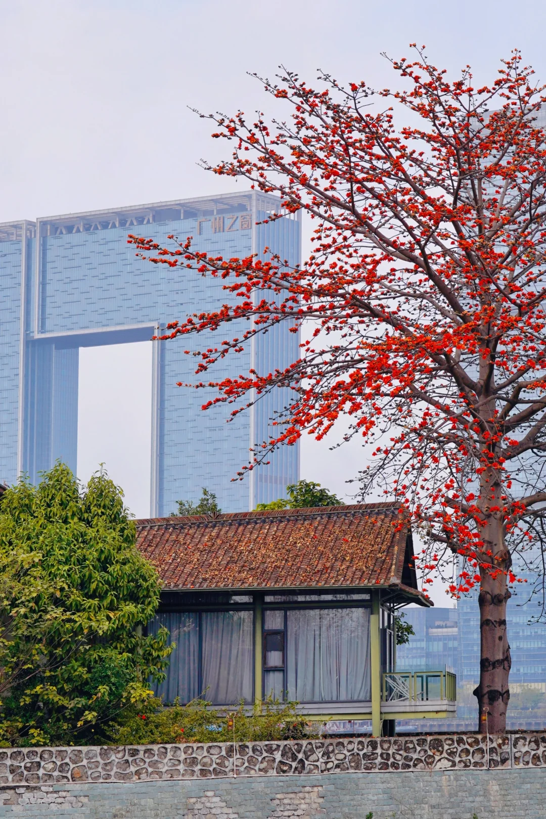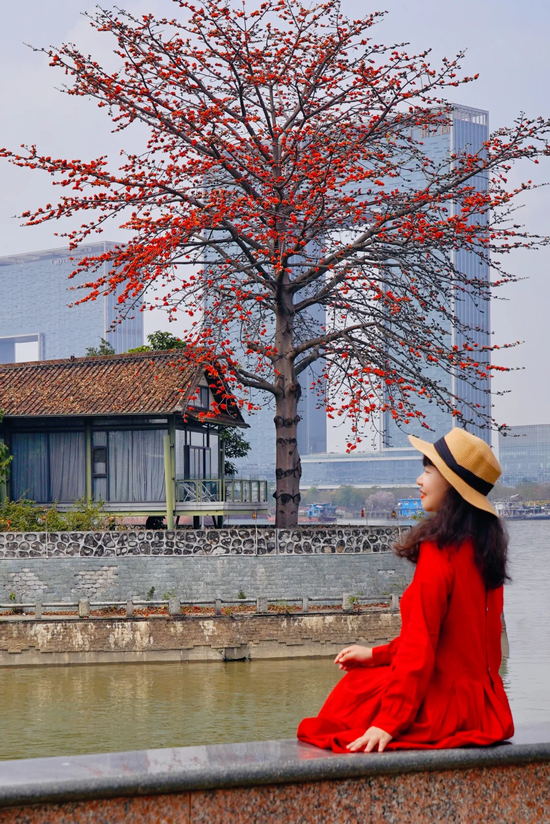 “奇花灿熳半天中,天上云霞相映红。” 广州赏木棉花,上滘船厂江边的木棉花应当占有一席之地 珠江边的老船厂自带怀旧氛围感 火红的木棉花与棕红色的瓦房顶形成了江边一道复古的风景线 远眺与一江相隔的广州之窗同框 又是另一幅别样的风景 - 📸游玩小tips ①、沿着江堤可以轻松拍全江边那棵高大的木棉花树,长焦镜头压缩背景,很适合拍人像 ②、这里很适合航拍,想练手的小伙伴就来这儿吧 ③、灯塔、江景……又能再拍一组日系风照,天气好的话,这儿的日落晚霞也是很赞 ④、图片是3.11实拍图,木棉花已到盛花期可以放心冲!晚些时候木棉花落下铺满屋顶也很美 - ️📍定位:上滘船厂/喜临院 🚇地铁:3号线厦滘A出口,步行约15分钟