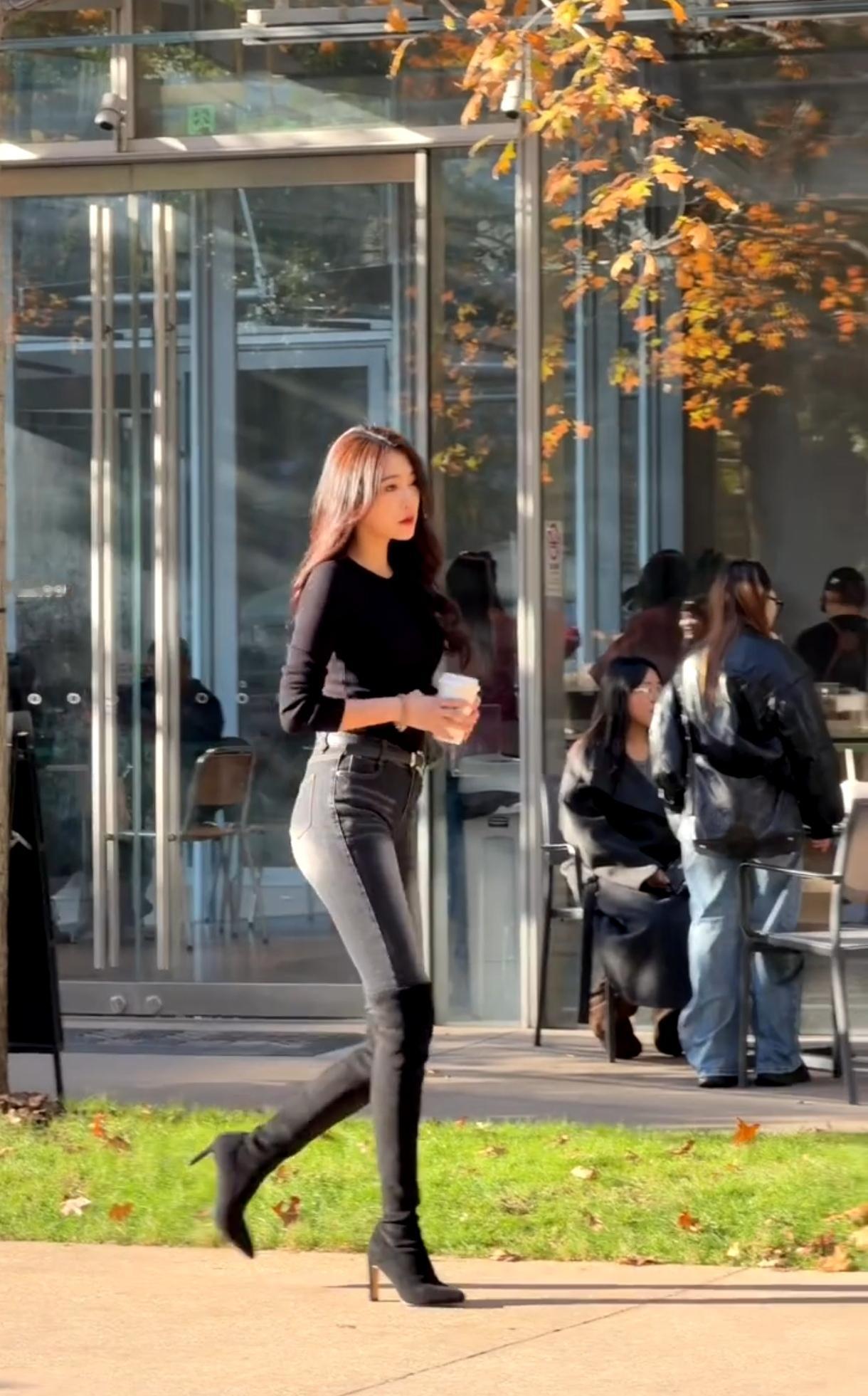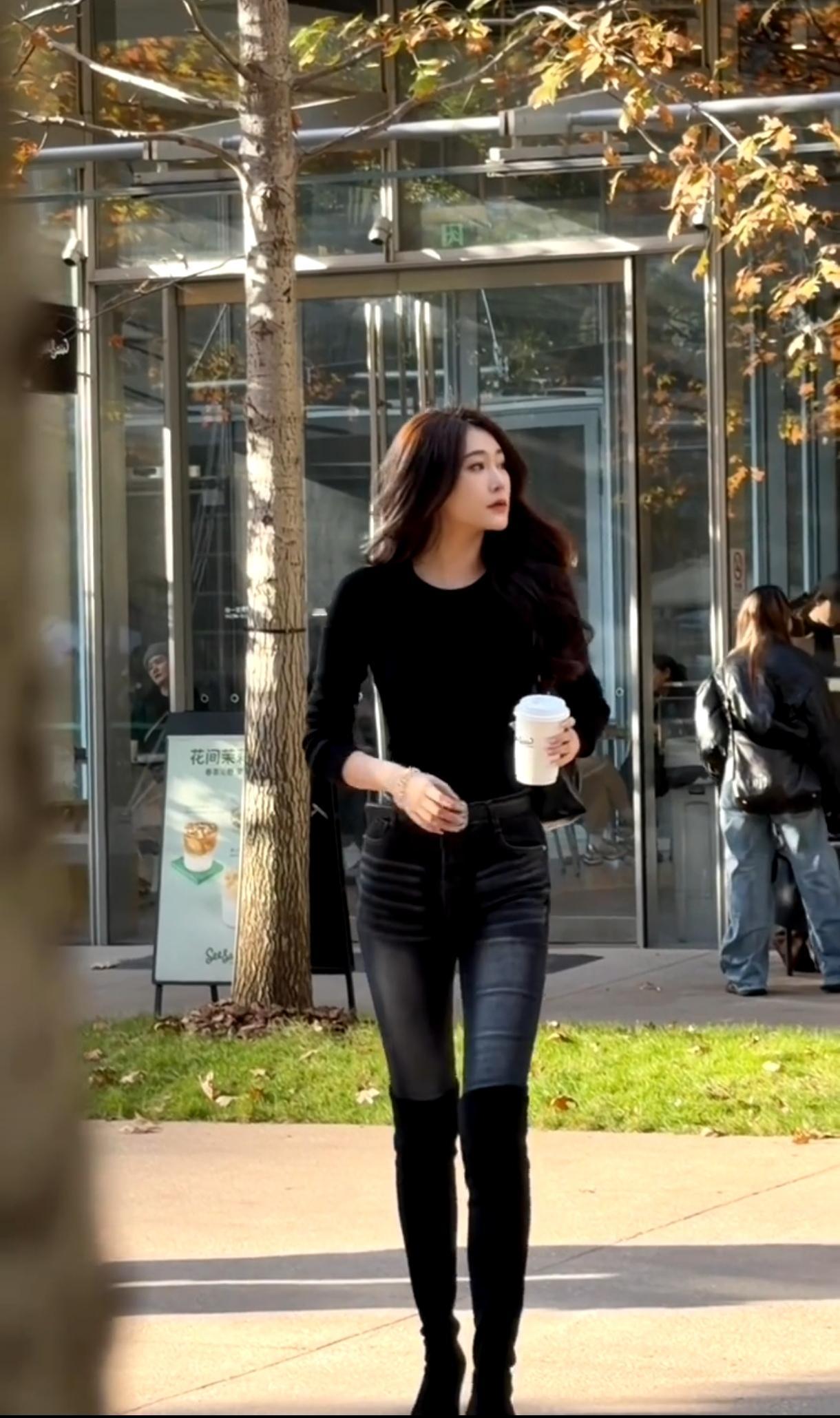 晒图笔记大赛牛仔裤高跟长筒靴穿搭果然很炸街,真靓!