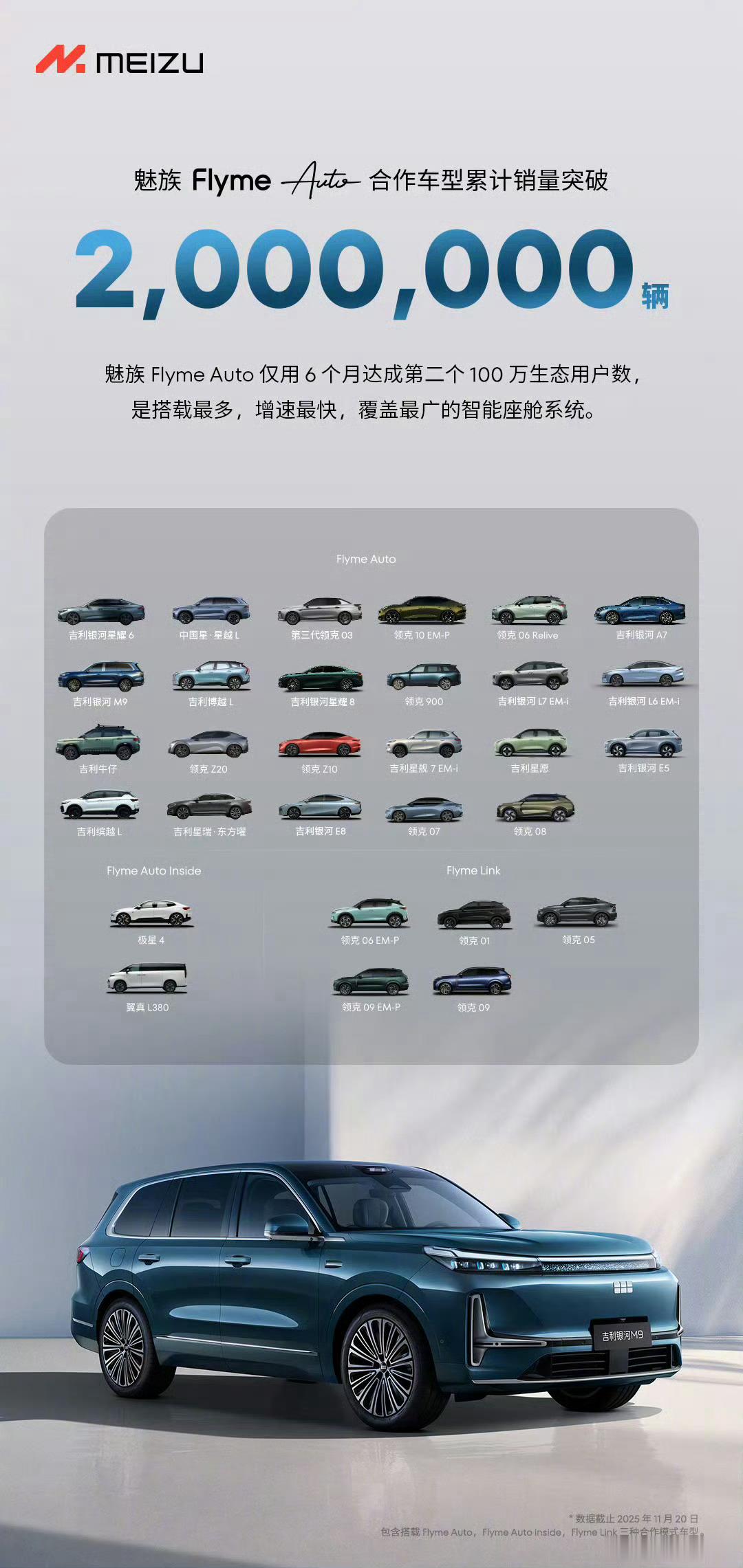 2025广州车展在吉利展台看了Flyme Auto 2车机,是真的好看!没想到搭这个车机的车型销量都破200万了,才6个月就搞定第二个100万用户,还合作了30款车,油车、混动、纯电都有,太牛了。👍像银河M9、L6,还有领克08EM-P、07EM-P这些车,都用的它。AI交互也很赞,有个叫Eva的智能体,能连续聊天、懂模糊指令,还会预判需求,比如没电了自动推充电站。魅族把AI用到整车了,能主动猜你要干啥、自动操作,用着特别方便,难怪这么多车愿意合作!