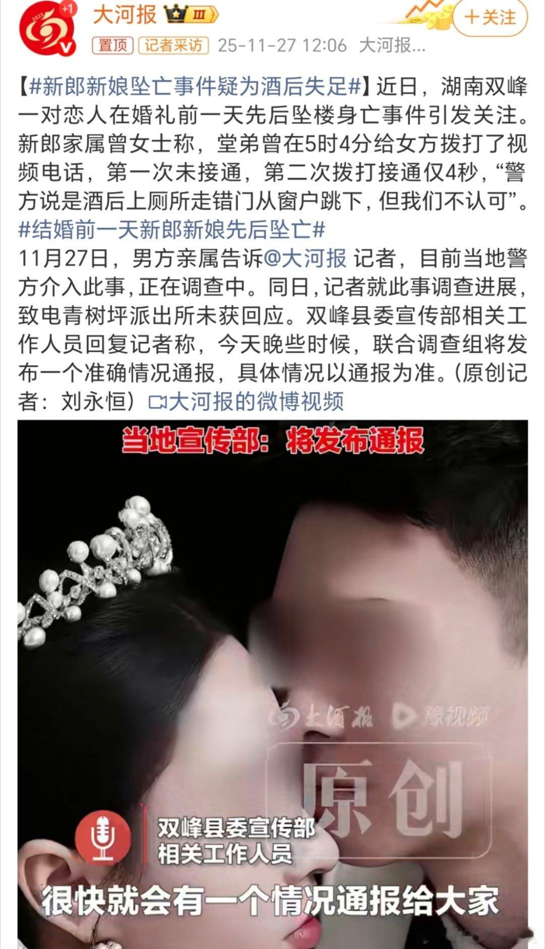 新郎新娘坠亡事件疑为酒后失足两个人都“酒后失足”吗?