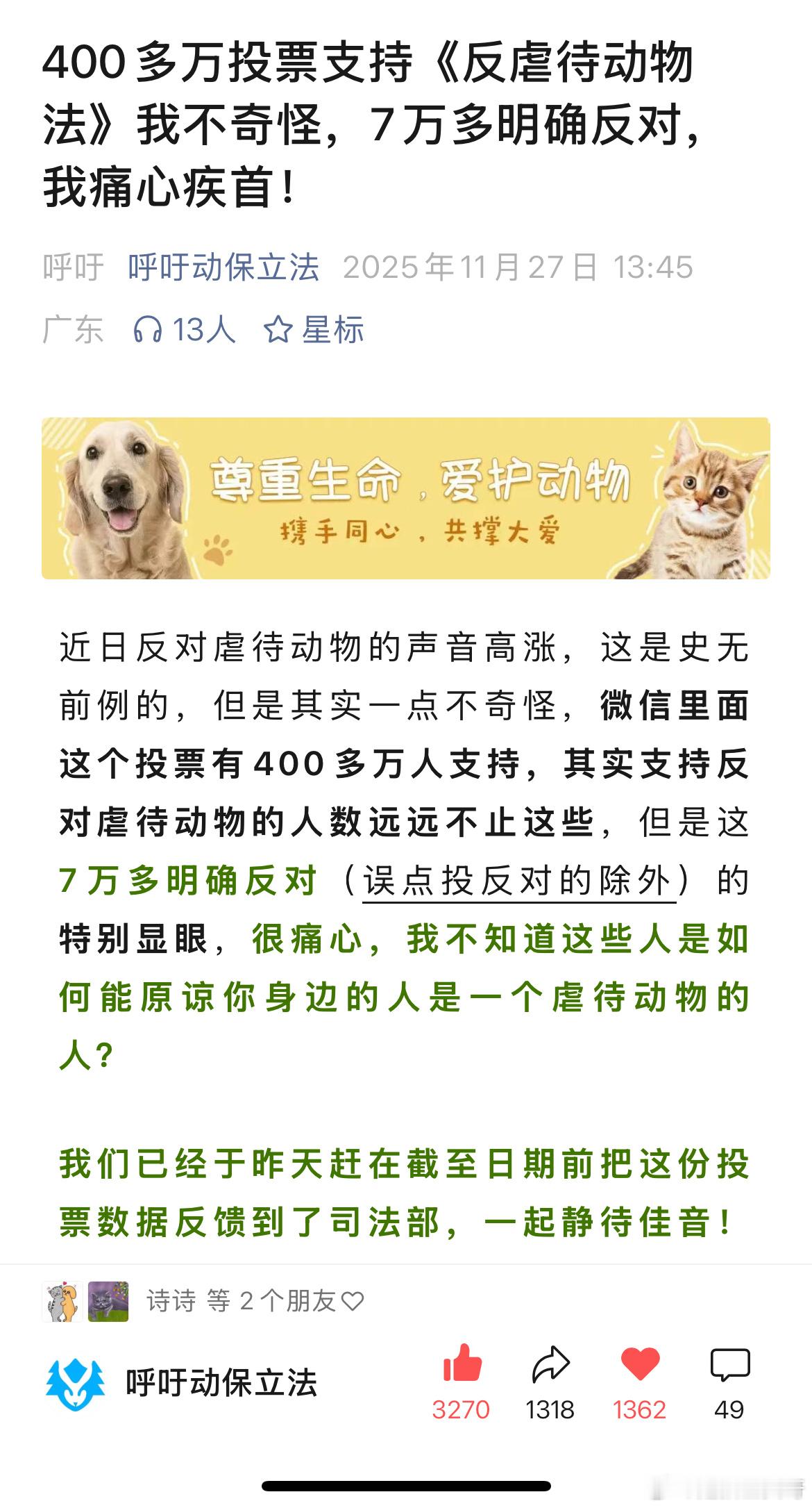 反对票我也不奇怪,这7万人多数都分不清杀生和虐生的区别,拿蟑螂老鼠,鸡鸭鱼对标,如果动物保护立法会带来混乱,发达国家也不会在一二百年前就立法了归根结底,文化水平低导致认知低是无法纠正的思想落差 三亚