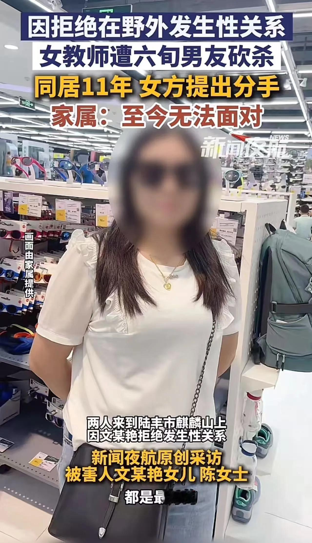 2024年8月16日的那个清晨,陆丰市麒麟山的山林中,空气中弥漫着一股阴森而压抑的气息。这里曾是许多登山爱好者的休憩之地,也曾是情侣们寻求片刻宁静的避风港。然而,这一天,却成为了令人震惊的血腥现场。一个本应充满温情与希望的家庭,瞬间陷入了无法挽回的悲剧。 故事的主人公,是一位善良而坚强的女性教师,名叫文某艳。她一直以温柔、善良、正直的形象示人,深受学生和家长的喜爱。离婚后,她与前夫的关系平静而理性,没有太多纷争。她与男友吴某某的关系,也曾一度让人羡慕。两人相识多年,彼此陪伴走过了十一载的岁月,虽没有正式结婚,但感情深厚,彼此依赖。期间,他们曾共同走过繁华的街头巷尾,也曾在寒冷的冬夜里相拥取暖。 然而,随着时间推移,两人之间的关系逐渐出现了裂痕。大概是性格不合,或者生活中的琐碎矛盾,逐渐让他们的感情变得紧张。特别是在面对一些重要的抉择时,双方的意见总是难以调和。文某艳作为一名教师,心中有着自己坚守的道德底线和职业操守。她一直坚持自己的原则,尤其是在涉及个人尊严和底线的问题上,从不妥协。 2024年8月16日那天,文某艳终于鼓起勇气,决定结束这段让她心力交瘁的关系。她约吴某某在陆丰市的麒麟山上见面,心中满是复杂的情感:既有对未来的迷茫,也有对过去的留恋。她希望用一句话结束这段痛苦的感情,重新开始自己的生活。 然而,她万万没有想到,这次会面会变成自己生命的终点。吴某某听到分手的请求后,并没有表现出应有的理智与克制。相反,他的反应极其激烈,提出了一个令人震惊的条件:如果不能在野外再发生一次性关系,他就不会同意分手。这句话像一把锋利的刀子,刺穿了文某艳的心。 面对如此荒唐且无理的要求,文某艳感到愤怒与绝望。作为一名教师,她深知自己的职业操守和道德底线。她拒绝了吴某某的请求,坚决表示不能在野外发生任何不道德的事情。她告诉他,自己不能为了所谓的“结束关系”而牺牲自己的尊严。她希望他能理解,彼此分手是最好的选择,而不是用这样的方式来解决问题。 然而,吴某某的心已完全扭曲,他的愤怒逐渐升腾到极点。就在那片寂静的山林中,他突然掏出随身携带的斧头,毫不犹豫地朝着文某艳的头部狠狠砍去。那一刻,时间仿佛凝固了。她还没有反应过来,便被斧头无情地击中。鲜血从她的头部涌出,染红了整个山林。她的身体倒在地上,生命在瞬间流逝。 血腥的场面令人毛骨悚然。斧头一次次落下,毫不留情。文某艳的生命在那片荒凉的山林中迅速流逝,她的眼神中还带着未及说出口的遗憾与愤怒。她的一生,原本可以平静而美好,却在这场突如其来的暴力中戛然而止。 案发后,警方迅速展开调查。凭借高效的工作能力和现场的证据,他们很快锁定了嫌疑人——吴某某。这个六旬男子,在作案后试图逃跑,但很快被警方逮捕归案。审讯中,他的供述令人发指:他承认自己用斧头砍杀了文某艳,只因为她拒绝在野外发生性关系。 这起案件一经曝光,立即引发了社会的广泛关注。人们纷纷谴责吴某某的残暴行径,也对文某艳的遭遇感到震惊与愤怒。她的女儿,陈女士,更是陷入了无法自拔的悲痛之中。她无法接受,那个在自己心中一直温柔善良、乐于助人的母亲,竟然会遭遇如此惨绝人寰的杀害。 陈女士在悲痛中不断质问自己和周围的人:“我妈妈那么好的人,为什么要被他杀害?她从来没有伤害过任何人,为什么会遇到这样的事情?”她的眼中满是哀伤与愤怒,仿佛整个世界都在为她的母亲哀悼。每当想到母亲那温暖的笑容,她的心就像被撕裂一般疼痛。 在公众的关注下,案件的审理也逐渐展开。检方指出,吴某某的行为极其恶劣,已经构成故意杀人罪。鉴于其犯罪情节恶劣、手段残忍,社会各界呼吁应依法严惩,判处死刑,以儆效尤。陈女士及其家人坚决要求法院判决吴某某死刑,认为只有这样,才能对母亲的生命和尊严给予最公正的交代。 社会舆论也纷纷发声,呼吁加强对心理健康的关注,尤其是在面对情感危机时,如何寻求正确的解决途径。对于受害者来说,她们的生命不应被如此残忍地剥夺。每一个生命都值得被尊重,每一段感情都应在理性与尊重中结束。 这起案件的发生,给人们敲响了警钟。无论在多么艰难的情感困境中,都应坚持理性与底线,绝不能让极端的情绪吞噬理智。对受害者的家人来说,失去亲人的痛苦永远无法用言语表达。而对社会而言,这是一场血的教训,提醒我们每个人都应珍惜生命,守护底线。 这起悲剧,留给我们的,不仅是无尽的哀思,更是对生命的深刻反思。每个人都应珍惜身边的人,守住自己的底线,不让仇恨与愤怒成为无法挽回的悲剧源头。愿文某艳的在天之灵安息,也愿这样的悲剧不再重演。生命宝贵,尊严不可侵犯,让我们共同努力,营造一个更加理性、温暖的社会。