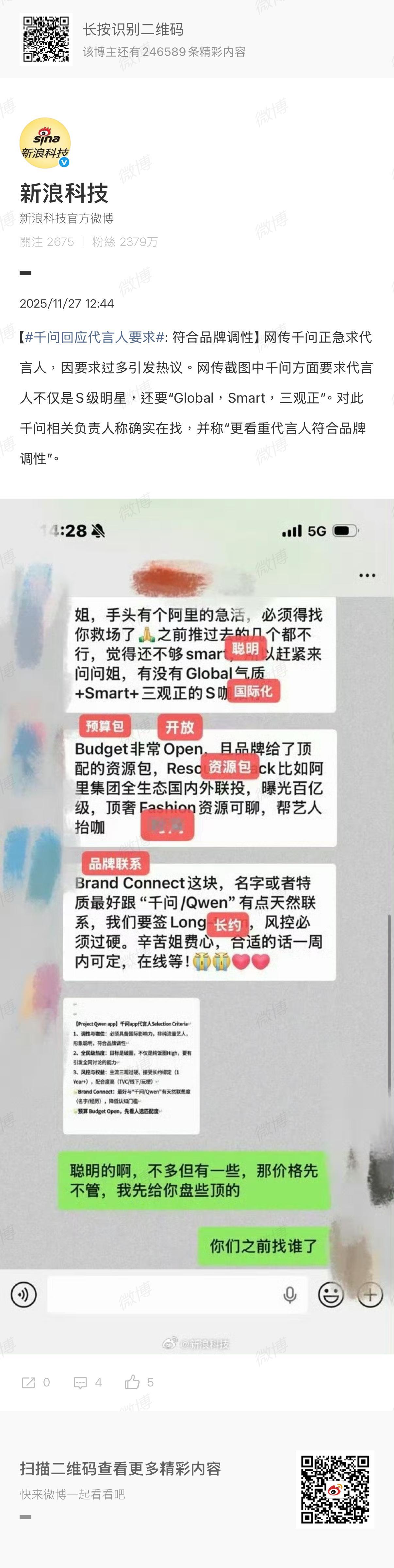 千问回应代言人要求 真的很好奇最后千问会找哪个代言人。符合smart+global+三观正的s咖,还跟千问有关系,大家觉得会是谁?