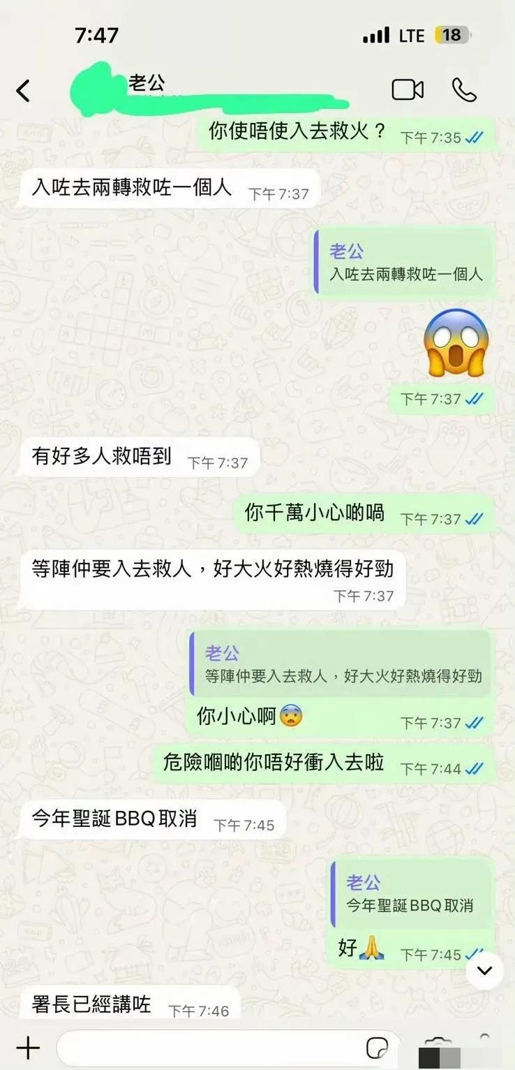 香港icon消防员妻子发文! 一句“冇得唔入”(“不得不进去”) 让人落泪… “今年圣诞iconBBQ取消”这句话才更是让人扎心,意思就是取消了准备在圣诞节icon期间举行的烧烤派对。这次救援不得不进去,这既是自己的职责,也是自己的使命。 “冇得唔入”四个字,道尽了香港消防员的生死抉择! 还有那句“今年圣诞BBQ取消”,字字扎心,这哪里是取消派对,分明是家属藏在心底的牵挂与担忧。 谁能想到,这些逆行的英雄从火场出来后,可能要背着PTSD过日子,甚至看见烧烤就想吐。 他们用血肉之躯挡在危险面前,背后是家人日夜悬着的心,既盼着他们能救更多人,更盼着他们平安归来。 所谓英雄,不过是平凡人扛起了责任。 别只在灾难时歌颂他们,更该记住他们也需要休息,也需要被好好守护。 你愿意和我一起,为这些最美逆行者说一句辛苦了吗?
