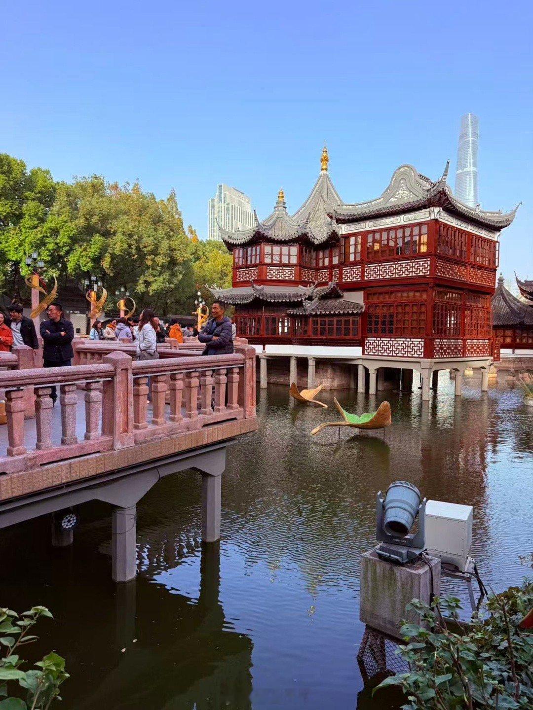 今天中午餐:海鲜捞汁、柠檬鱼、高丽菜和丝瓜蛤蜊汤。下午去豫园溜达。