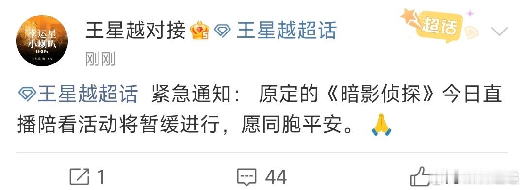 王星越直播活动暂缓王星越直播陪看暂缓 平安