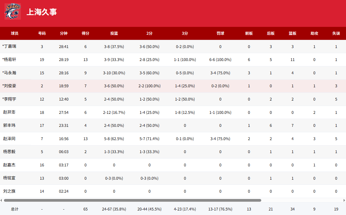 上海:赵泽同13分、杨易轩13分、马永瀚9分