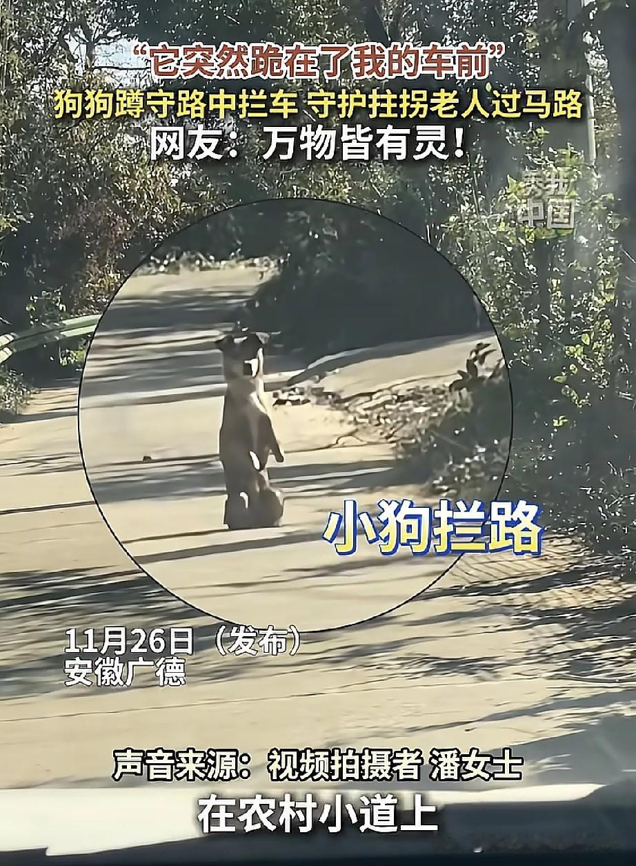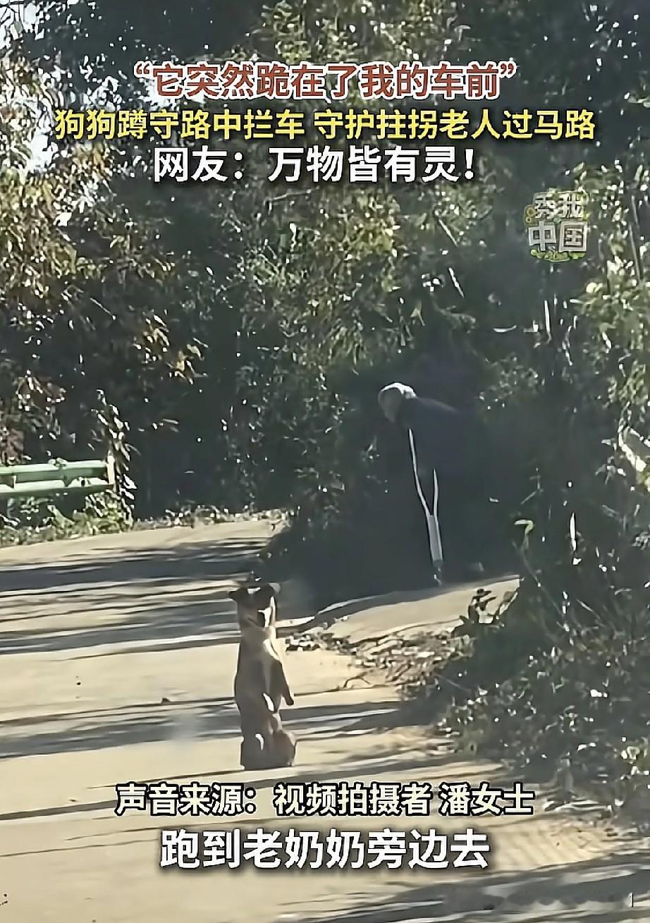 生灵拦路,必有缘故,不是报恩,便是求助。 女子和丈夫驾车路过一个小村庄,途中见到一只狗,女子便拿起手机拍了起来。忽然,小狗从路旁窜出,跪在了车前。夫妻二人不明所以,停下车后,只见一位老奶奶拄着拐杖,从拐角处慢悠悠地穿过马路到了对面。这时,这只狗才起身跑到老奶奶身旁。 狗狗这一跪,既帮了老奶奶,也帮了开车的人。不是狗狗要谢你们,而是你们得谢谢这只狗。若没有狗狗,你们说不定要赔不少钱呢!都说骗人是小狗,可小狗从不骗人。狗的陪伴全心全意,爱你至深。它虽不会言语,却会用一生守护你,不离不弃,始终如一。 有时候,人真不如狗。狗很单纯,而人却为了钱、为了满足私欲,抛弃了那份单纯。有些人对待老人,还比不上这条狗! 对此大家怎么看?
