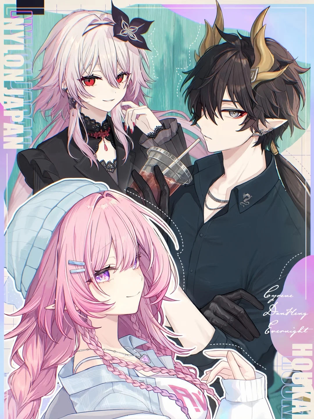 黄金裔×NYLONJAPAN (假如黄金裔来到这个世界) 腾荒&长夜月&昔涟——这张简直美炸了,感觉像是都市新番的三人小队[萌萌哒R] 万敌&白厄——这张腿长有点夸张哦,衣服有种复古的感觉[害羞R] 刻律德菈&海瑟音&缇宝——海刻的表情怎么有种活人微si的感觉[笑哭R] 缇宝、缇安、缇宁画的有些瘦弱了……