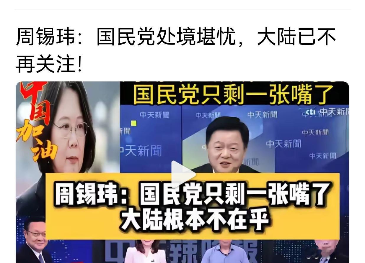 听听周锡玮对国民党的评价: 只剩一张嘴了,大陆根本不在乎! 郑丽文还闭口不提“统一”,还说“强强联合”“一国两区”!是不是想的有点多了?