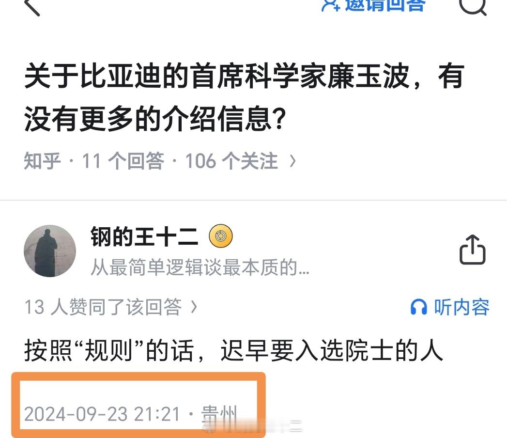 发现我对“院士增选”的预测准确率是真高(纯被西理三位教授增加的失败率)刚被提醒我之前也曾经预言比亚迪总工廉玉波先生应该当选院士,廉是今年新增的为数不多的企业出身以及为数不多的机械类院士。其实华为的余承东也应该当选院士,老余主持发明的分布式基站,是电信史上的顶级技术发明,他这个一个全国科技进步二等奖产业技术价值太高了,足够评院士了。