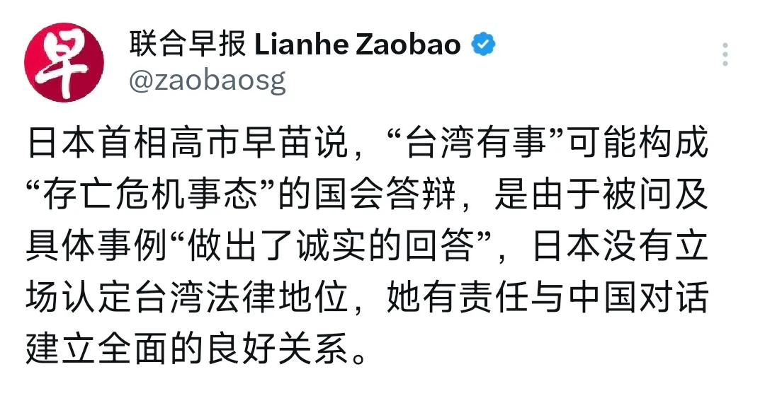 高市再发涉台谬论“做出了诚实的回答”所以说那是它的心里话!