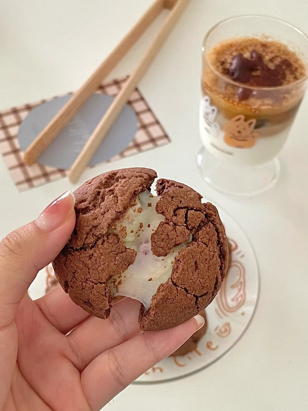 掰开酥酥脆脆,里面麻薯还能拉丝真的超好吃😋