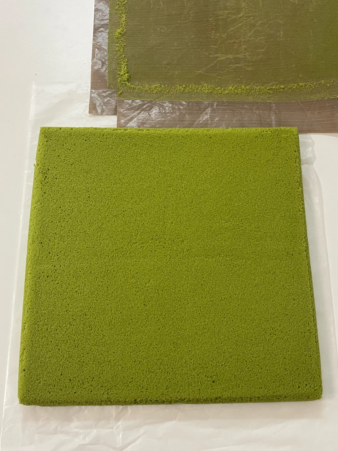 7️⃣,揭油布时间。刚出炉的蛋糕非常的嫩,不建议立马撕开!不然稍微用点力它就会有裂痕,破坏毛巾面。可以等到后面还有一点点余温的时候撕开。