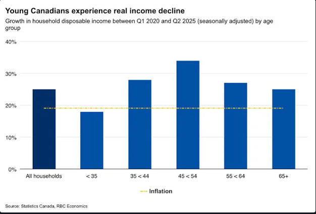 得益于疫情期间的政府援助,加拿大年轻人快速积累财富,但收入增长却停滞了加拿大海外新鲜事 加拿大金融邮报报道说,加拿大35岁以下年轻人近年来积累财富的速度超过其他年龄群体,但这一趋势正面临停滞。根据加拿大皇家银行发布的报告,自疫情爆发以来,年轻家庭的净资产翻了一番,主要得益于金融资产的增长。在新冠疫情封锁期间,由于加拿大紧急救援补助金(CERB)等政府援助计划,年轻加拿大人可以积累储蓄。股市的强劲表现、代际财富转移以及疫情期间房价飙升,也助推了这一群体的资产增长。为海外华人提供有价值的信息与分析,更多内容和全文可在蓝天、电报、x查找causmoney,或直接谷歌搜索不仅资产增加,他们的负债也有所下降。自2020年以来,35岁以下人群是唯一一个抵押贷款债务减少的群体。疫情期间购房的年轻人,受益于房价上涨和超低利率;而另一些人则因负担能力问题推迟甚至放弃购房,从而避免了新增房贷。“由于房价高企,一些年轻家庭推迟或放弃购房,避免了新的抵押贷款债务,而已有房产的年轻人则保留了疫情期间的资产增值。”报告作者、皇家银行经济学家瑞秋·巴塔利亚写道。但财富积累的同时,年轻人的收入增长却陷入停滞。过去四年中,年轻人的可支配收入增幅为所有年龄段中最低,仅增长了18%。这一增幅比45至55岁人群低16个百分点,也比全国平均水平低8个百分点。“35岁以下人群是唯一收入增长未能跟上通胀步伐的群体。”巴塔利亚指出。造成这一现象的原因之一,是年轻人往往集中在易受经济冲击的行业,如零售、酒店和餐饮业,这些行业在劳动力市场放缓时首当其冲。近年来,加拿大失业率上升,其中有近40%来自年轻劳动者,其中许多是刚毕业的年轻人,未能找到工作。自2020年以来,35岁以下群体的就业率预计将下降3个百分点。“这表明在加拿大,越来越少的年轻人依靠工作获得收入。”巴塔利亚说。这使得年轻一代在疫情期间积累的财富面临风险。“年轻加拿大人收入与财富之间的脱节,令人对他们的财务安全提出严峻疑问,尤其是在房地产和股市逐渐恢复常态,政府援助效应消退的背景下。”报告指出。实际上最近几个季度,35岁以下家庭的财富增速放缓程度超过其他所有年龄段。皇家银行预测,加拿大的劳动力市场将有所回暖,年轻人也许可以避免财富进一步流失。