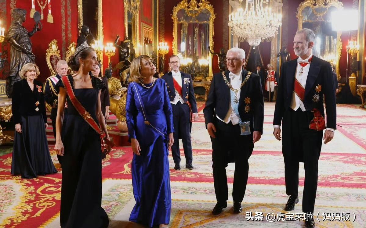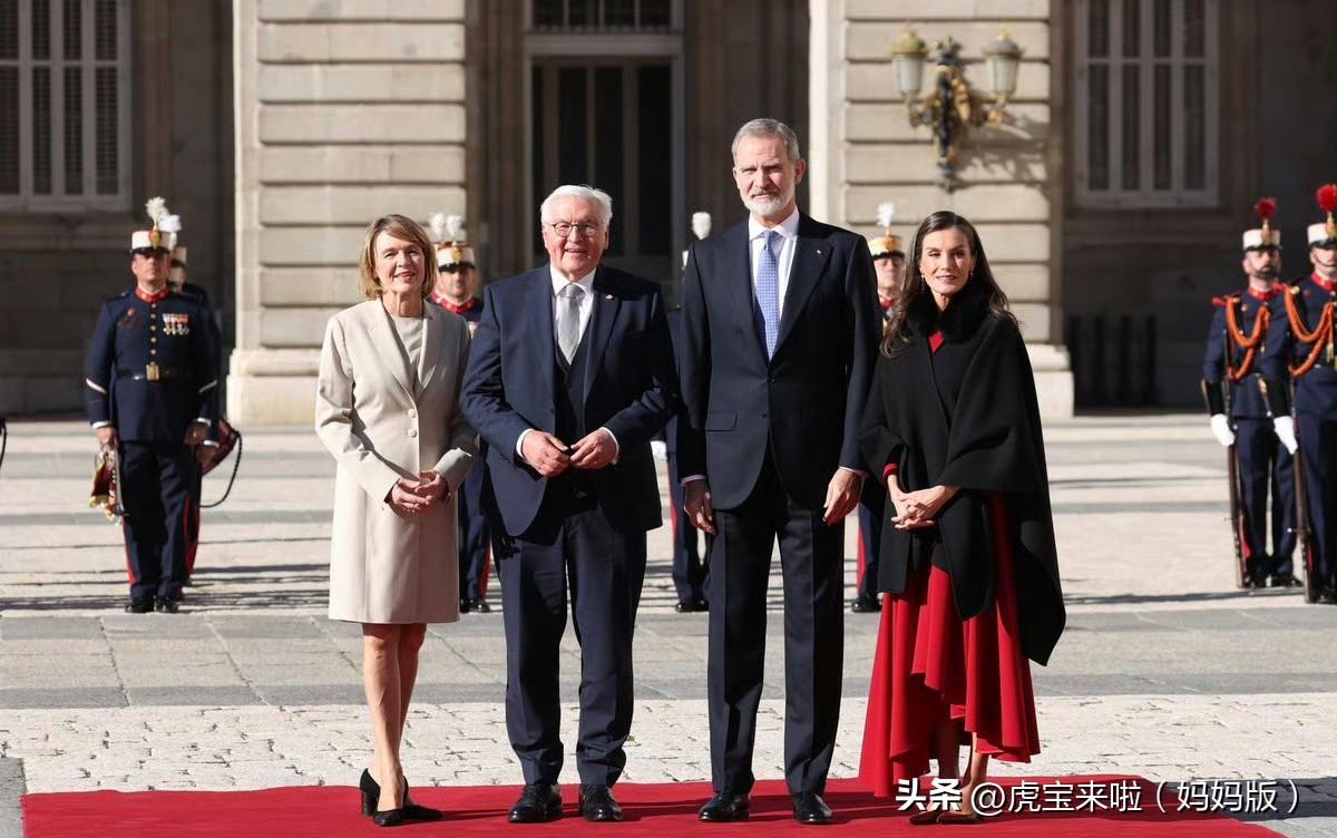 德国访问西班牙的白天照!莱蒂齐亚王后红裙配黑色斗篷!夜间竟然盘了头发!太多惊喜!