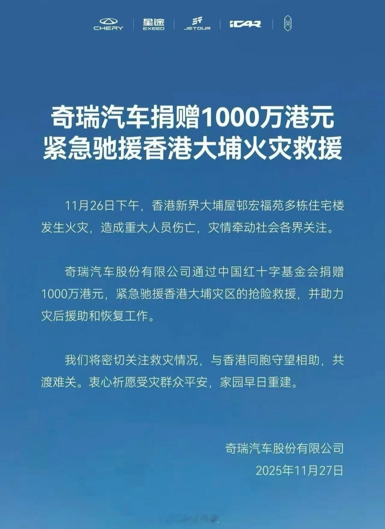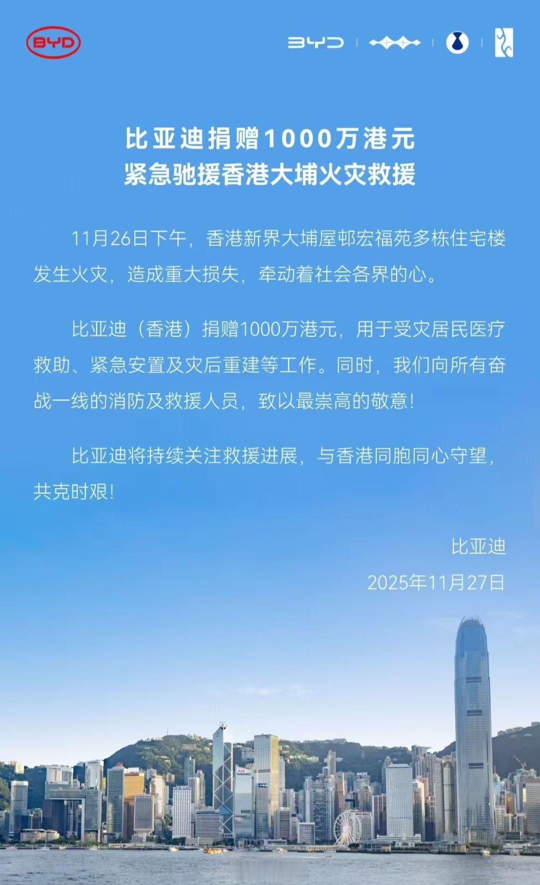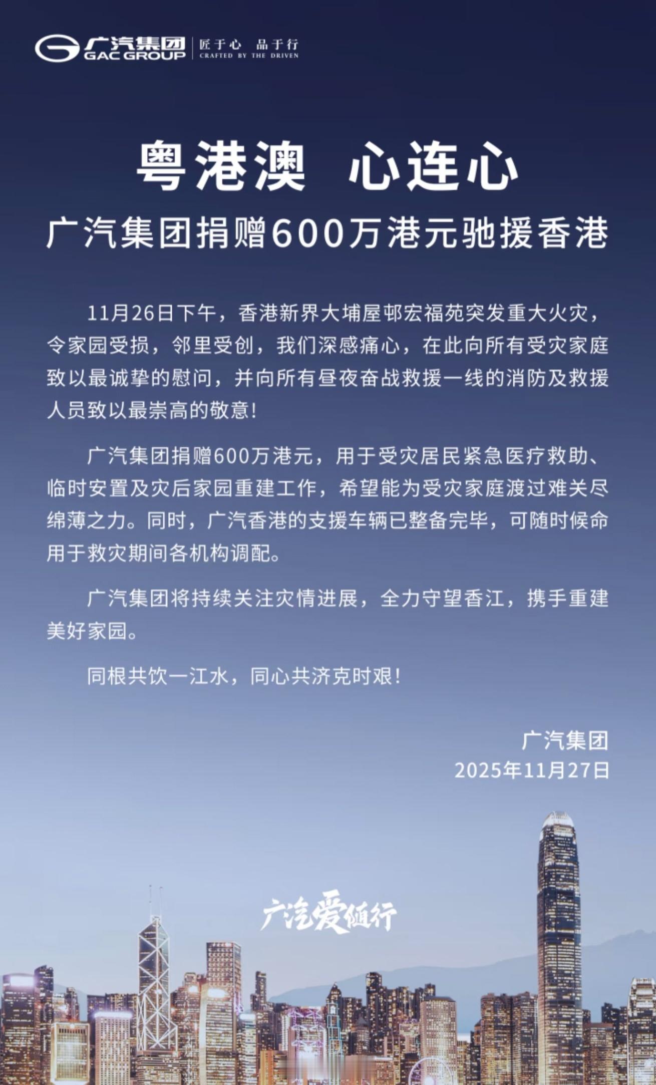 同根同心,守望相助。各大车企纷纷驰援香港大埔火灾救援。香港火灾已有75人遇难