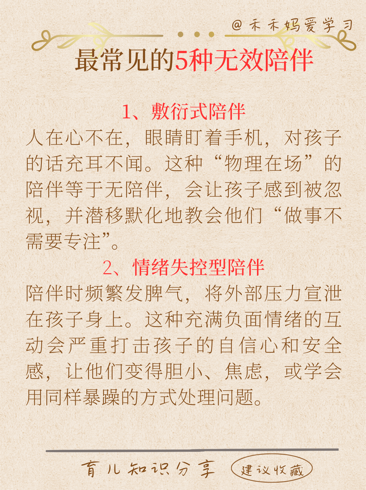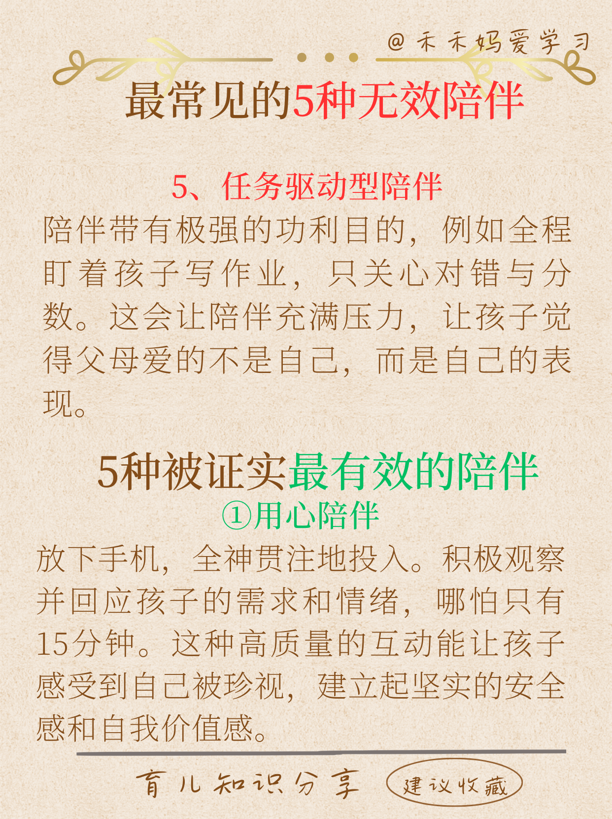 著名心理学家阿尔弗雷德·阿德勒曾说:"幸福的人用童年治愈一生,不幸的人用一生治愈童年。" 父母给孩子童年时期的陪伴质量,决定孩子人生的底色,是孩子终身心理健康的基石。 优秀的孩子不是简单的陪出来的,分享5种普通父母最常犯的5种无效错误陪伴,以及被证实最有效的5种陪伴方式。 希望每一位父母都能认真看一看,为孩子的未来奠定一个良好的基础。