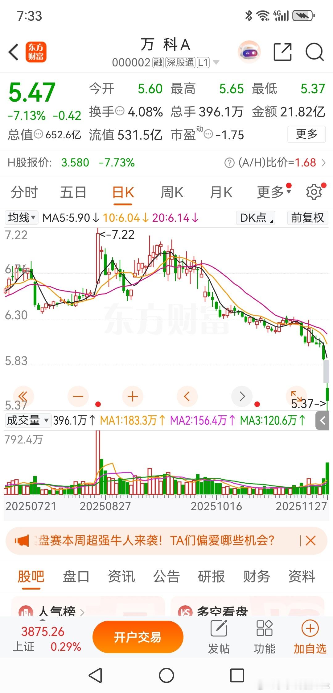 2005年那会,房地产可是中国经济的顶梁柱,万科作为行业老大,年营收破百亿、净利润13.5亿,绝对的价值蓝筹。谁能想到,20年后的2025年11月27日,万科A直接遭了重锤:开盘5.60元,一天就暴跌4.92%,总市值收在668.1亿元,硬生生跌回了2005年的水平!以前股价最高冲到过42元,现在却死死钉在5元区间,这20年的“价值回归”,就是中国房地产从黄金时代跌到寒冬的真实写照。股价暴跌背后,是万科业绩彻底“失血”。2025年三季报一出来,数据吓一跳:单季度净亏损160.69亿元,前三季度累计亏了280.16亿元,这可是万科上市以来头一回连续巨亏。营收同比下滑26.61%,卖房收入直接暴跌44.6%,光存货跌价就提了227.32亿元,相当于现在总市值的三分之一。就算大股东深圳地铁今年已经输血超269亿元,还是填不上窟窿:短期债务超1500亿元,手里的现金才656.8亿元,资产负债率高达73.51%,比行业平均水平高太多;前三季度卖项目、盘活资产才回款139.7亿元,连付利息都不够。这一切的根源,其实是房地产行业彻底变天了。以前房子是“刚需”,现在早就供过于求了——2025年全国商品房销售面积同比下滑超20%,核心城市房子要卖18个月以上才能清完;政策也从以前的“刺激买房”变成“稳风险”,城中村改造、盘活存量这些政策,根本救不了下滑的销量;以前房企靠高杠杆、快周转赚钱的模式彻底失灵,万科搞的“万物云”这些新业务还没成气候,传统卖房业务的利润低到了历史谷底。从当年“招保万金”的行业标杆,到现在市值不足700亿的尴尬处境,万科的坠落不只是一家公司的估值缩水,更是房地产从“国民支柱产业”变回“普通行业”的必然结果,这20年的行业剧变,真的太让人感慨了。财经股票