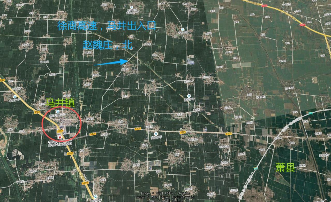 徐砀商高速公路,萧县段, 马井出入口收费站具体位置 位于赵魏庄北,接现状杨楼镇到马井镇的路。主要方便,马井和杨楼两镇的出行。