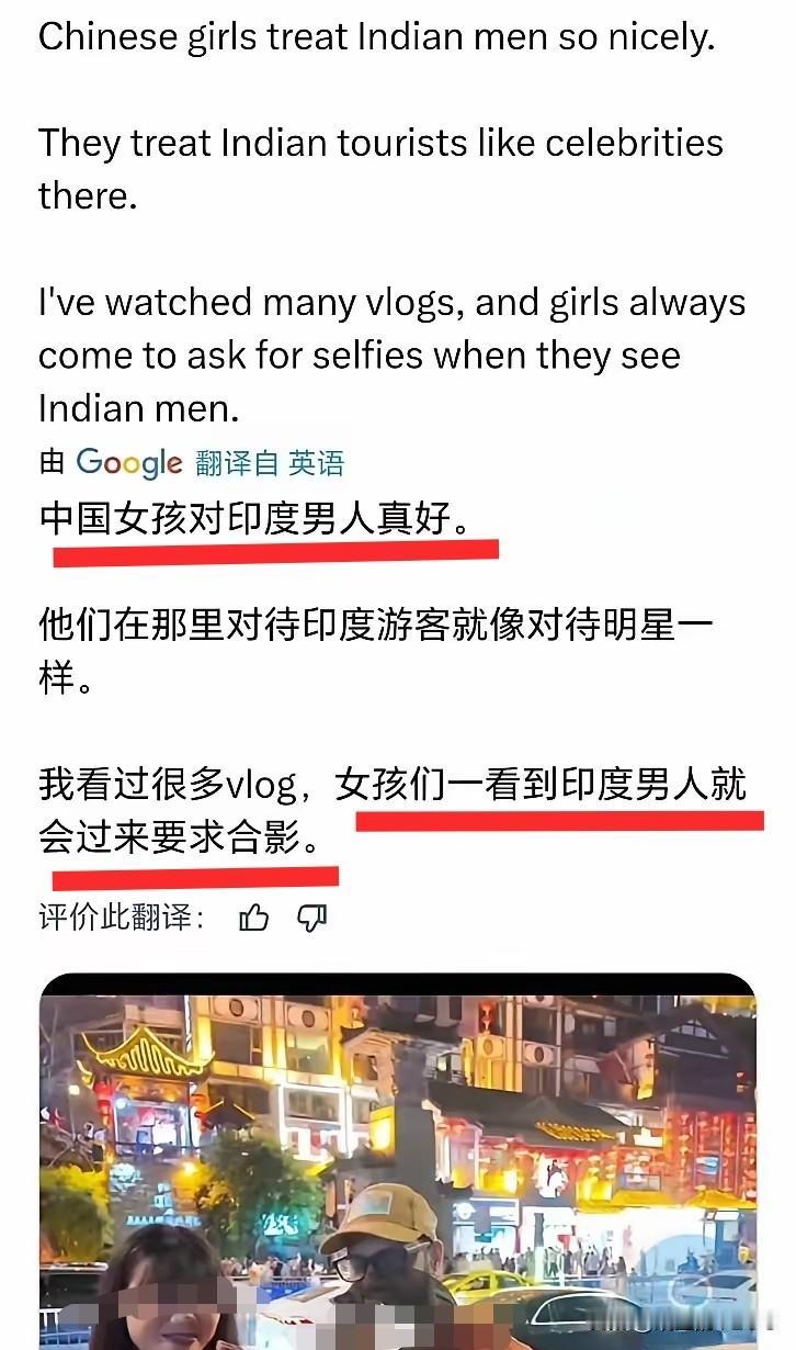 看到中国女孩与印度人合影,印度人用羞辱性词汇形容中国女孩,印度人认为中国女孩合影的表情,证明了印度人在中国很受欢迎…[捂脸] [大笑][大笑][大笑] 就像在动物园里拍摄狒狒,只是对狒狒好奇。如果按印度人的想法,拍狒狒就等于爱狒狒爱到骨子里…那印度人的逻辑思维简直逆天。 不过,看到陌生外国人就主动上去合影确实也令人不解。 朋友们,你们对此事怎么看? 欢迎大家在评论区探讨,留言…[送心]
