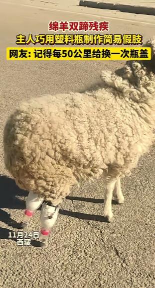 人类太聪明了!一只小羊因寒冷冻坏了双蹄,再也无法站立行走。本以为此生只能躺平,结果主人急中生智,竟然用塑料瓶为它做了一副假肢!网友笑评:这办法绝了,50公里只消耗俩瓶盖儿! 藏北牧区的生存法则里,从来没有“浪费”二字,每一件物品都有其存续的价值,哪怕是被游客遗落的矿泉水瓶,也可能在某个寒冬,成为延续生命的关键。 卓卓的存在,就是这一法则最生动的例证。 如今在那曲安多县的草场上,这只羊的身影格外显眼——它的双后肢裹着两层厚厚的羊毛垫,外层套着两个改造过的塑料瓶,瓶底的瓶盖早已被磨得光滑,与冻土接触时发出沉稳的“笃笃”声,不同于其他羊蹄的清脆,却透着稳稳的生命力。 很少有人知道,这副“瓶制假肢”已经迭代了三次。 最初的版本只是简单裁剪的瓶身,顿珠发现卓卓奔跑时瓶身容易偏移。 第二次他在瓶身两侧加了两道牛毛绳固定带,却又影响了关节活动。 直到第三次,他根据卓卓行走时的受力轨迹,将瓶身下半截削出倾斜角度,既增加了防滑性,又能缓冲草原碎石的撞击——这些调整,都是他在放牧间隙一点点观察、琢磨出来的。 故事要从去年隆冬说起,藏历腊月的藏北,夜间气温低至零下四十度,顿珠家的母羊在迁徙途中的临时雪窝产房里,提前生下了卓卓。 作为羊群里最后一只降生的羔羊,卓卓先天就比同伴孱弱,加上雪窝通风性差,它的双后蹄在出生第三天就出现了冻伤,等顿珠发现时,蹄部皮肤已经发黑坏死。 在藏北牧区,牲畜冻伤是常事,但伤及蹄部且无法站立的羔羊,存活率极低。 顿珠的阿爸生前就说过,“草原不养闲人,也不养站不起来的羊”,乡亲们看到卓卓的样子,都劝顿珠放弃。 但顿珠没同意,这只小羊羔刚睁开眼时,就用湿漉漉的鼻子蹭过他的手心,他给它取名“卓卓”,藏语里是“坚定”的意思,潜意识里,他就没打算让这小家伙向命运低头。 他用保温的羊毛毡搭建了临时暖棚,每天用温热的酥油茶拌着饲料喂它,又骑着摩托车跑了往返四十里地,到乡镇兽医站请教,可兽医也只能给出清创、保暖的常规建议,明确表示“蹄子坏死无法逆转”。 接下来的半个月,顿珠成了牧区里最“不务正业”的人。 他先是把自家的旧藏袍拆成细条,编成柔软的绑带,想让卓卓试着借力,可藏袍布料吸水性强,沾了雪水后又冷又沉,卓卓根本抬不起腿。 后来他又找到牧民常用的桦木,削成蹄形支架,桦木质地坚硬,却不防滑,卓卓走两步就摔一次,疼得蜷缩在棚角不肯再动。 转机出现在一次清理帐篷时。 顿珠整理游客留下的废弃物,发现了三个矿泉水瓶——这类塑料瓶在牧区很稀罕,平时用来储存盐巴或装酥油。 他拿起一个捏了捏,突然意识到,这东西既不会像布料那样吸水,也不会像木头那样笨重,而且塑料的韧性刚好能适配羔羊的体重。 顿珠的改造过程,完全遵循了牧区“就地取材”的原则。 他没有剪刀,就用牧民割草的藏刀慢慢裁剪,瓶身边缘用磨刀石磨了整整一个下午,直到用脸颊贴上去都感觉不到棱角。 第一次给卓卓戴上假肢时,小家伙明显很抗拒,不停地甩动后肢。 顿珠没有强迫,而是把它抱到铺着干草的平地上,自己趴在旁边,一点点引导它抬起前腿,再轻轻托着它的后肢,让塑料瓶假肢轻轻接触地面。 他嘴里哼着牧民安抚牲畜的古老歌谣,那是他小时候跟着阿爸学的,据说能让动物感受到安心。 奇迹在第五天发生了。 卓卓竟然自己站了起来,虽然摇摇晃晃,但没有摔倒。 顿珠当时正在远处放牧,看到这一幕,他立刻扔掉手里的牧鞭,朝着暖棚的方向狂奔,跑到近前时,眼泪都冻在了脸上。 他蹲下身子,小心翼翼地摸了摸卓卓的塑料瓶假肢,小家伙像是知道他的心意,用头轻轻蹭了蹭他的手背。 如今的卓卓,已经完全融入了羊群,甚至能跟着队伍完成短途迁徙。 顿珠每天放牧归来,第一件事就是检查它的假肢:如果瓶身有磨损,就用新的矿泉水瓶替换。 如果羊毛垫片脏了,就重新更换。 遇到雨雪天气,他还会在瓶身外套上一层防水的兽皮套——这些额外的照料,在他看来都是理所当然。 这事儿后来被来牧区采风的摄影师拍了下来,视频传到网上后,很快引起了新华社的关注,11月24日的报道让更多人知道了藏北草原上的这个小故事。 网友们的评论很有意思,有人开玩笑说“建议设立塑料瓶假肢保养点”,也有人感慨“劳动人民的智慧不分场景”。 夕阳西下时,卓卓跟着羊群走在回家的路上,塑料瓶假肢踩在雪地上,留下一串深浅均匀的印记。 在这片广袤而严酷的草原上,两个普通的塑料瓶,不仅撑起了一只小羊的生命,更诠释了牧区人与自然共生的密码:善待每一个生灵,物尽其用,心之所向,便是生机。 如果各位看官老爷们已经选择阅读了此文,麻烦您点一下关注,既方便您进行讨论和分享,又能带来不一样的参与感,感谢各位看官老爷们的支持!