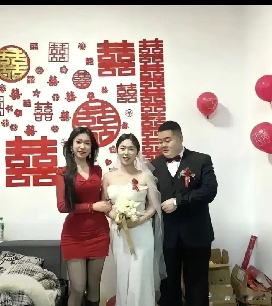 这新郎也太不知足了,吃着碗里的看着锅里的,瞧你看伴娘的眼神,眼神这是要把伴娘也吃了吗。 新娘子也很漂亮呀,有身体、有脸蛋、笑容也很甜美。 不过伴娘也确实别有一番风味,首先身材高窈窕、该有的都有,眼神又特别的迷人,很有成熟女性的魅力,而且比新娘还要高。 难怪新郎的眼神不对,魅力摆在哪儿呢!是你的话估计也会分神。
