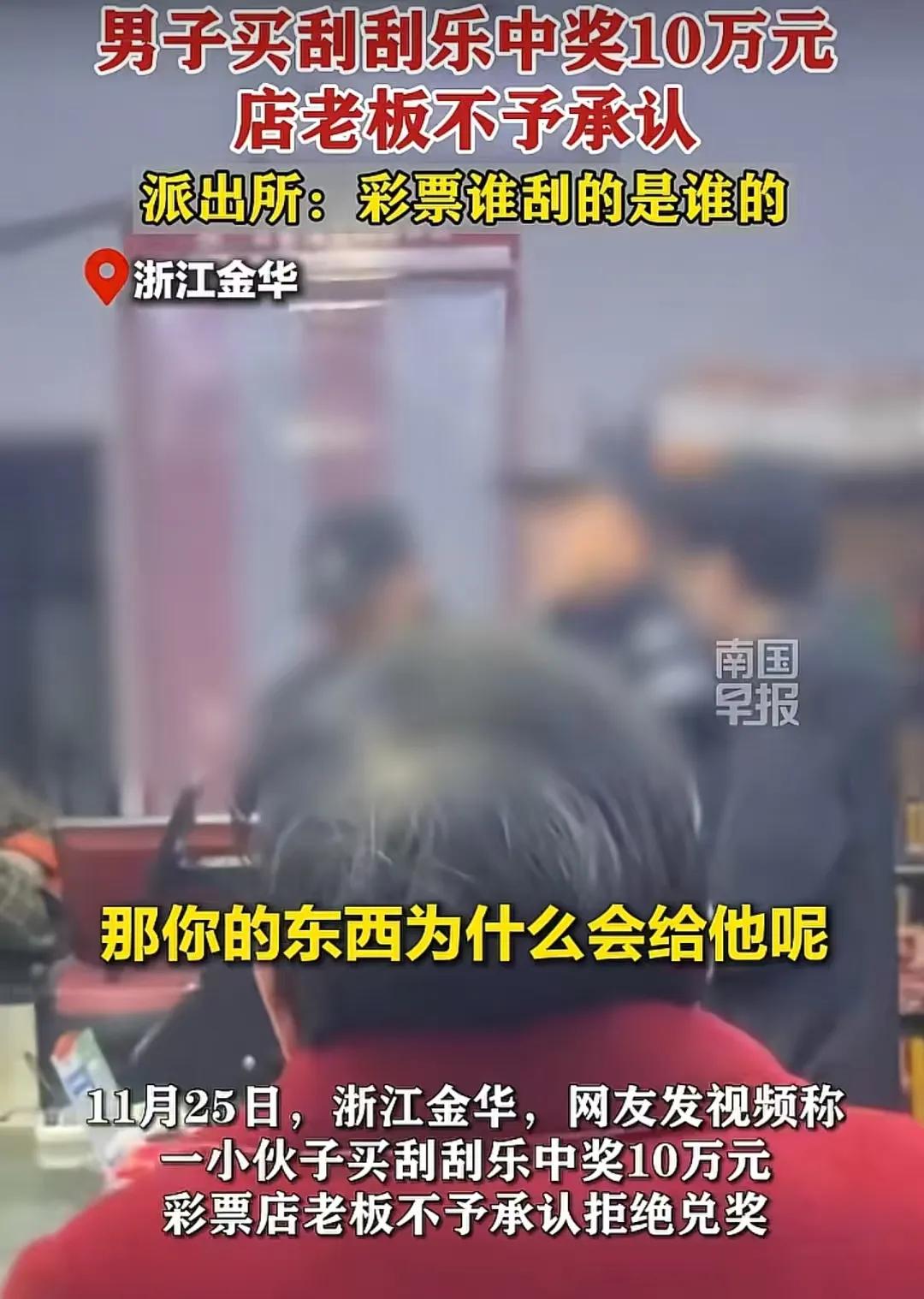 见利忘义。在浙江金华,有一位男子经常在一家彩票店买彩票,一来二去已经跟彩票店老板混得很熟,所以每次买彩票男子都是先刮彩票后付钱,无论是否中奖,每次都如此,他们之间的这种约定俗成,已经达成了一种默契。然而,有一次这个男子买刮刮乐中奖 了10 万,欣喜万分,但没想到这个老板却对他说:“你高兴的太早了,你彩票钱还没付,这张彩票是我的!”男子气坏了,在争辩无果的情况下,掏出手机报了警。 民警经过调查,依据事实, 晓以利害,最终民警依法维护了男子的合法权益,要求彩票老板立即归还奖金,并对其进行批评教育。 这起事件折射出一个社会现象:诚信与法律意识的重要性。老板的行为,虽是个人的“霸道”,但更反映出部分商家对消费者权益的漠视。而男子坚持用法律武器维护权益,也让我们看到了正义的力量。 网友们纷纷表示:“这才是真正的公平正义!”“老板太不讲理了,法律必须维护消费者权益。”也有人感慨:“我们身边的诚信缺失,亟待改善,但正义从不缺席!”更有人说:“这次胜利,不仅是男子的胜利,更是全民诚信的胜利!” 这件事告诉我们:无论遇到多么荒诞的事情,只要坚持依法维权,就一定能赢得尊重。也提醒商家:诚信经营,才是长远发展的根本。每个人都应成为守法的好公民,共同营造一个公平、正义、充满正能量的社会环境。 这不仅仅是一起普通的中奖事件,更是一堂生动的法治教育课。它让我们看到:正义虽然会迟到,但从不会缺席。只要我们坚持用法律武器捍卫权益,公平正义终将到来。希望每一个人在面对不公时,都能像那位勇敢的男子一样,挺身而出,用行动点亮社会的正能量!