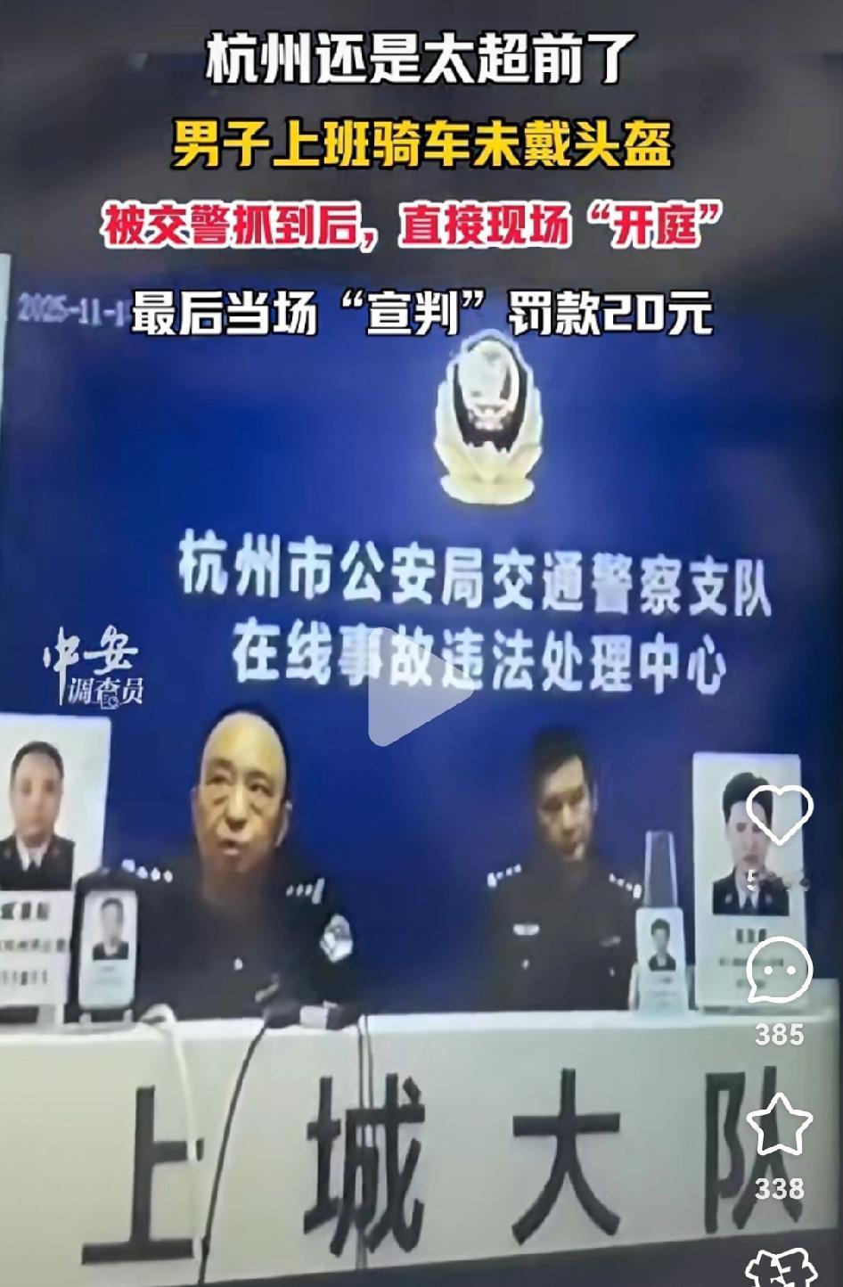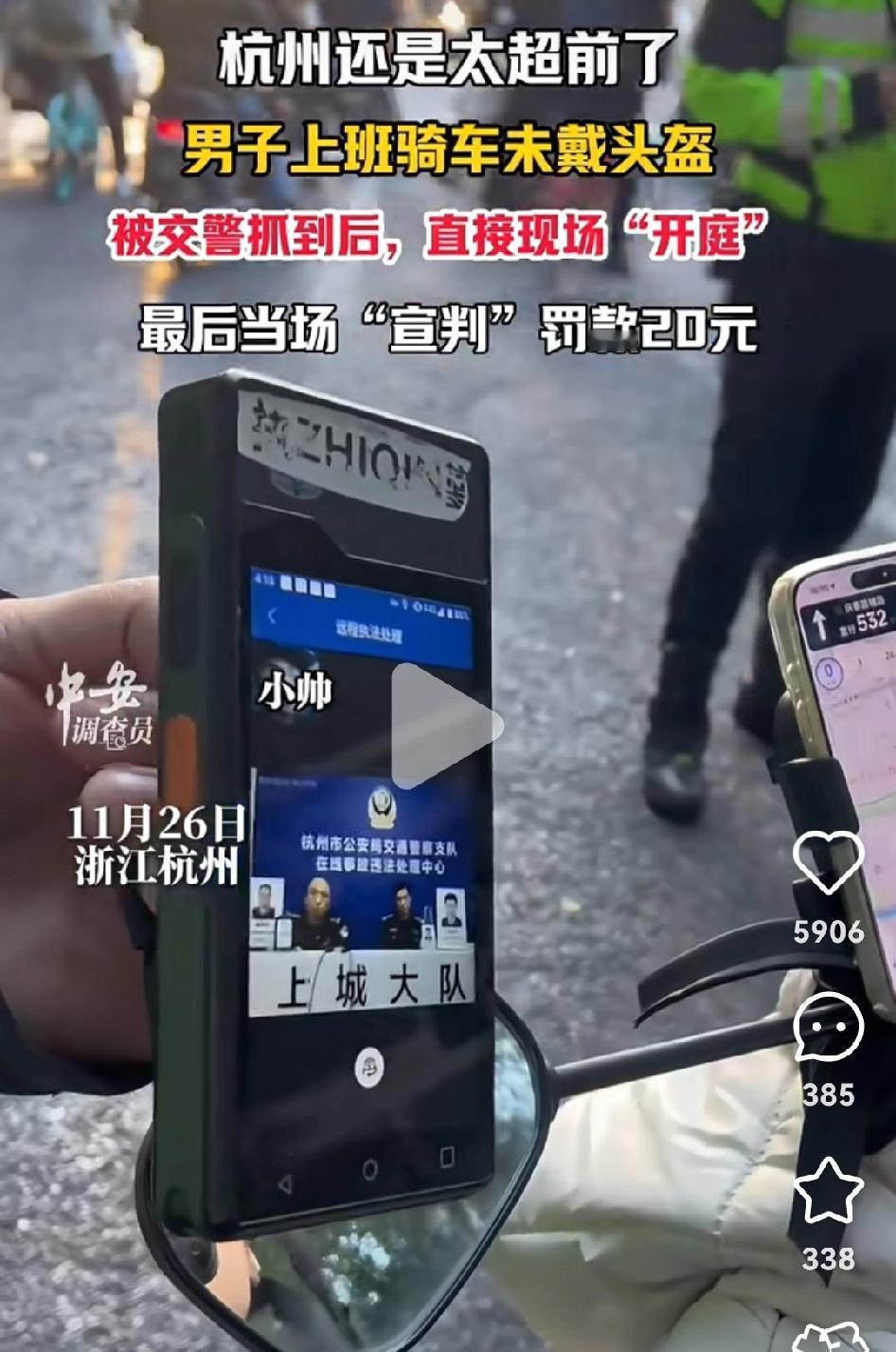 杭州是不是太超前了,没戴头盔被交警抓住,直接视频远程执法。 不过我在想,费那么大劲就罚20元?有没有这个必要啊!批评教育下不好吗? 有网友透露,主要是辅警没有罚款的权限,所以不能现场开罚单,我又在想,难道不能赋予他们执法权吗