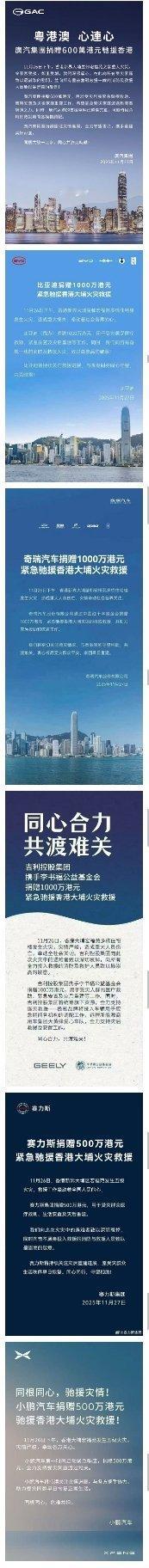 香港火灾,车企们接龙式捐款,巨龙一样的爱心接力赛,这样的爱心壮举,只有我们中国🇨🇳百家车坛