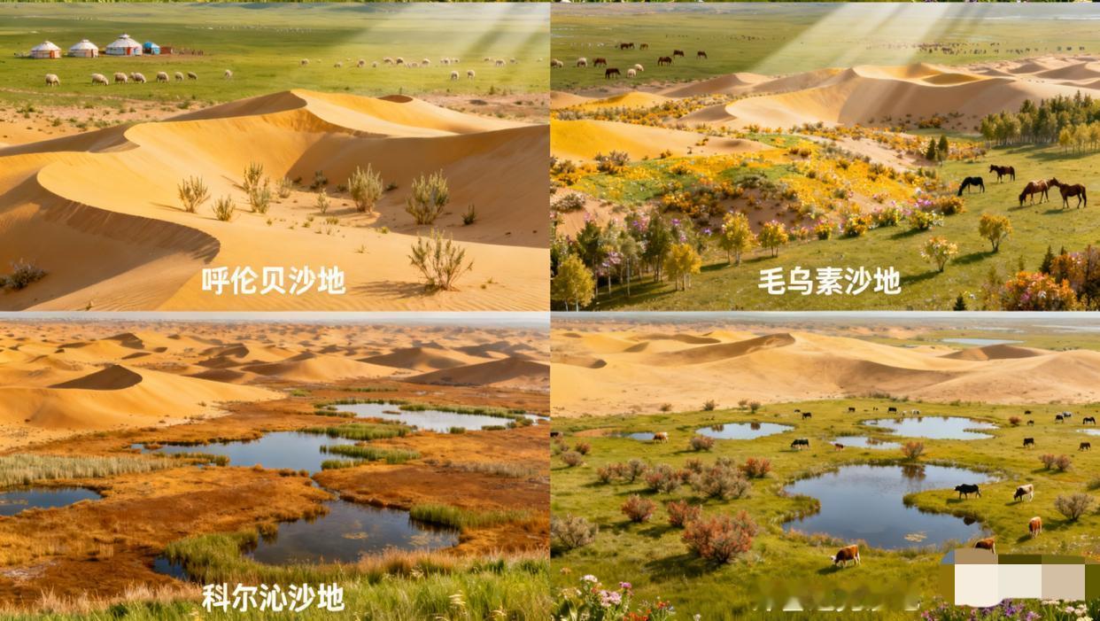 中国有8大沙漠和4大沙地。这4大沙地全部分布在内蒙古自治区,并且这4大沙地分别与4大草原相对应。 1)呼伦贝尔沙地 对应 呼伦贝尔草原。 2)科尔沁沙地 对应 科尔沁草原。 3)浑善达克沙地 对应 锡林郭勒草原。 4)毛乌素沙地 对应 鄂尔多斯草原。 沙地是草场退化的产物,所以沙地要比沙漠好治理。目前这4大沙地均已被有效治理,各地还发展出了自己的特色产业。可喜可贺。 以前每到春秋季北京风沙很大,人们出门一会眼睛/鼻子/嘴里都是土,女人出门用纱巾把头整个蒙住很常见。北京的风沙主要受科尔沁沙地的影响。现在北京春秋季还是刮风,但沙尘暴已难得一见了,老北京人肯定有切身体会。这是最直观的沙地治理卓有成效的表现。