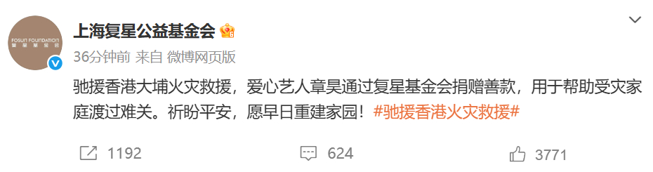 王嘉尔捐款100万港元,同时还上传了香港赞避服务单位地址并提议转发