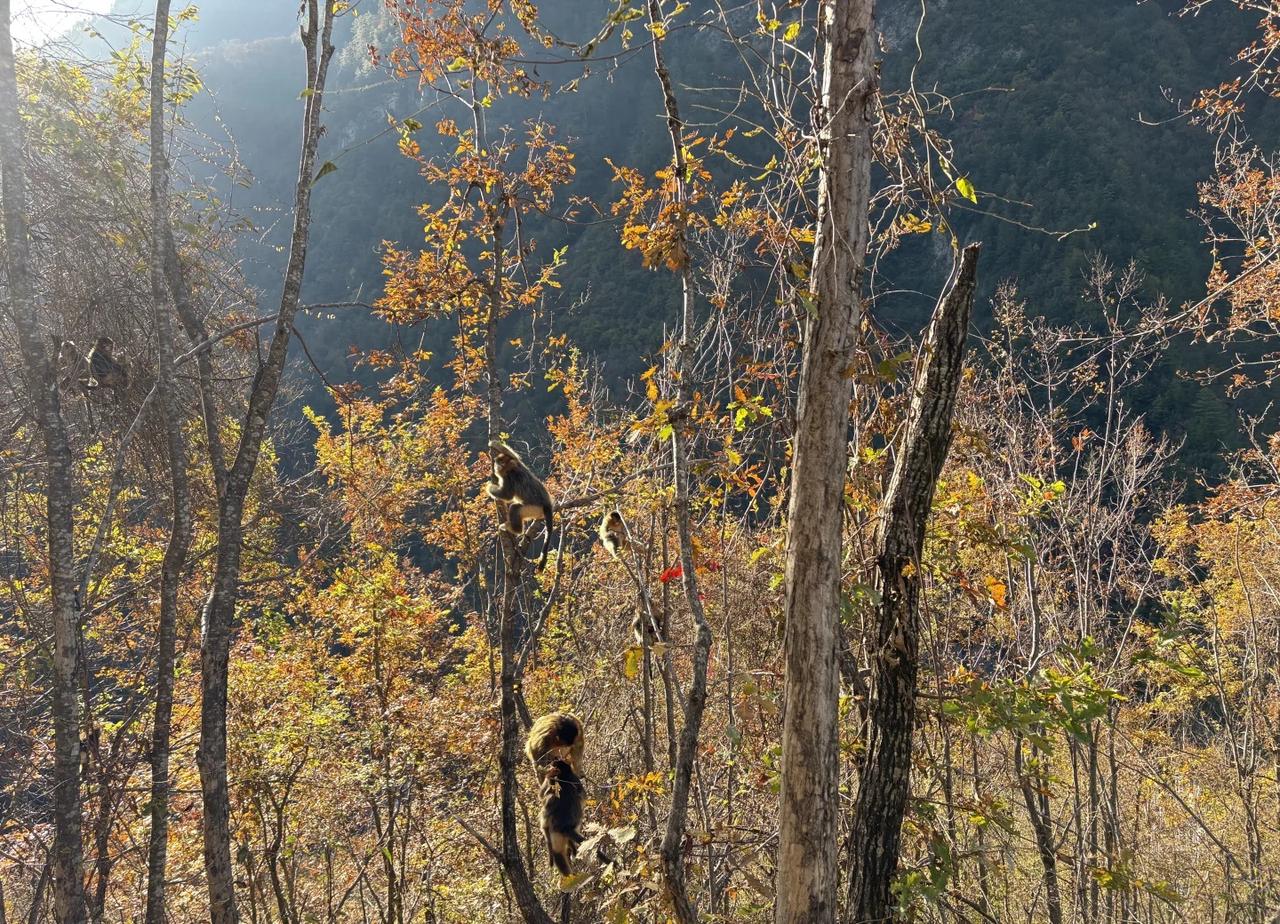 看金丝猴得上山,但蓝脸川金丝猴的确漂亮,猴王披挂的金丝威风凛凛