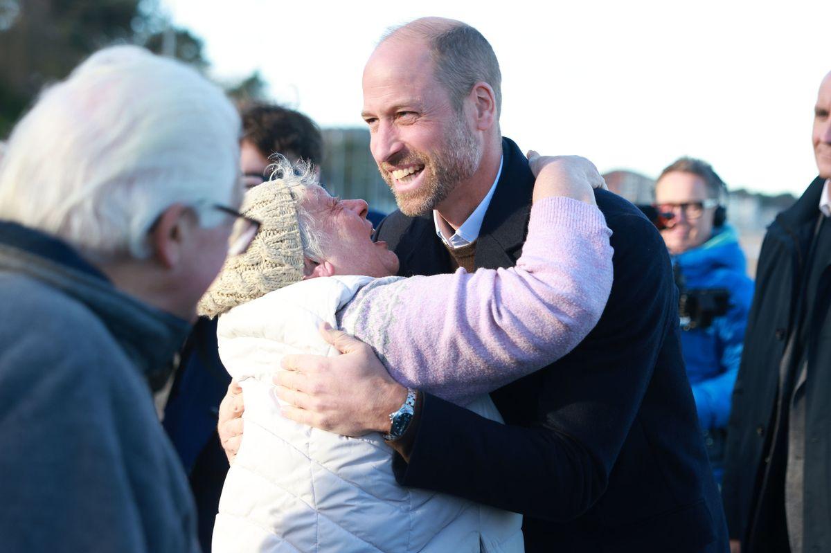 威尔士亲王今天将焦点放在了当今生活在沿海社区的年轻人身上,他受到了一群兴奋的皇家观察者的迎接——一位狂热粉丝甚至拉住了未来的国王拥抱了一下。 65岁的安吉拉·琼斯见到王子非常高兴,她 环绕脖子的手臂威廉并拉他入怀。威廉笑着俯身拥抱了这位康威当地的居民。安吉拉成功与威廉王子攀谈并拥抱,她表示“爱他”并“无法相信他如此高大”。 在访问期间,威廉与海洋保育协会青年海洋网络的成员一起在科尔温湾的海滩上散步。该网络由一群年轻人组成,他们与海洋保育协会合作,帮助提高英国各地青少年对海洋保护的参与度。 威廉随后会见了参与海洋保护协会的海崖之思项目的志愿者和年轻人,他听到了年轻人通过该项目工作所学到的故事,并讨论了海洋的影响以及花时间在海边对心理健康的重要性。 王子今天稍后还将访问威尔士的一个名为青年舍兹的组织,为可能面临学校开除、欺凌和其他社会问题(如无家可归)的年轻人们提供一个安全的空间。