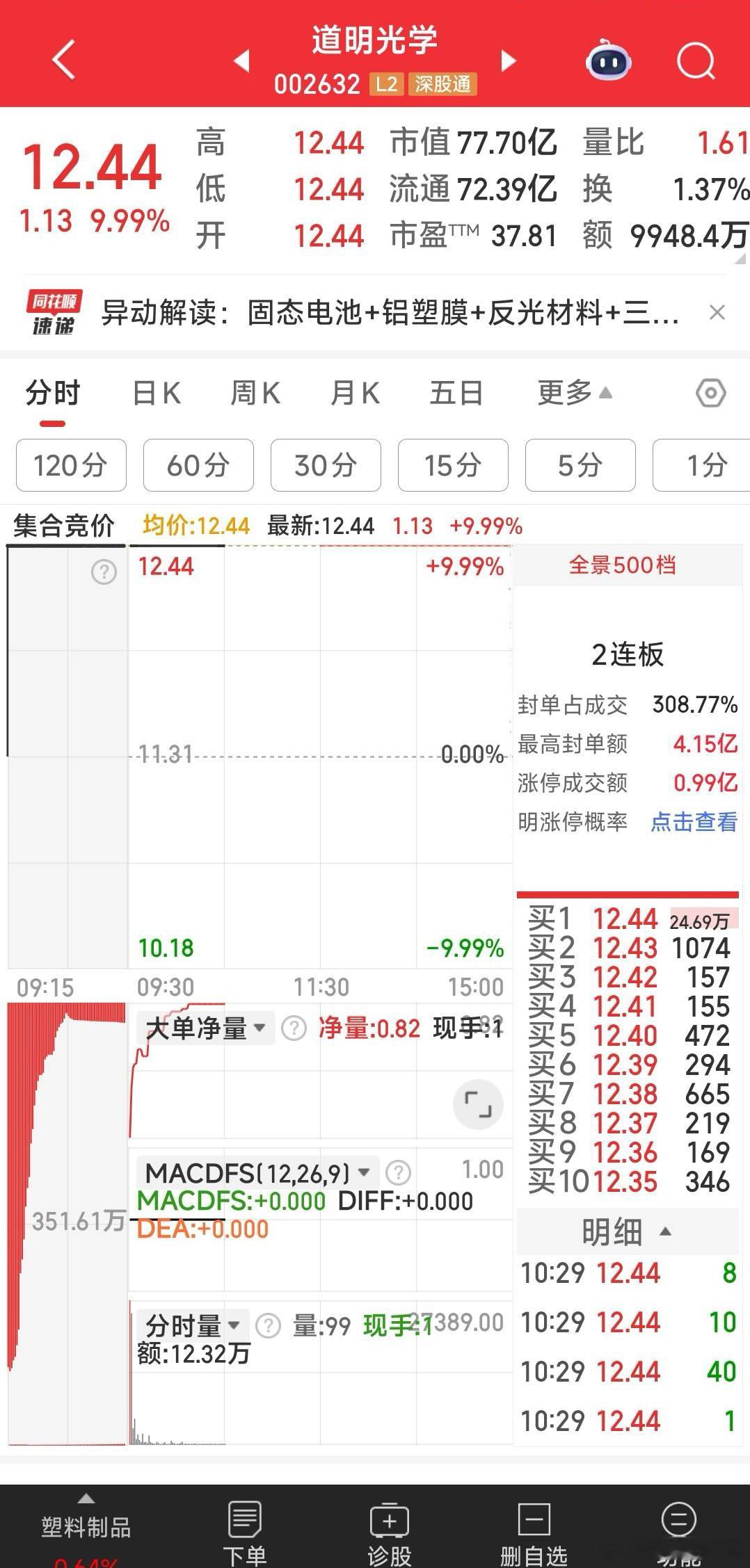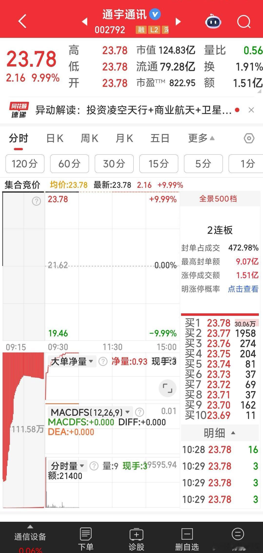 撤单通宇通讯(估计难上车),继续排队道明光学(有希望上车)或择机再加仓福日电子(当股价上穿分时均线14.66元时再入)。