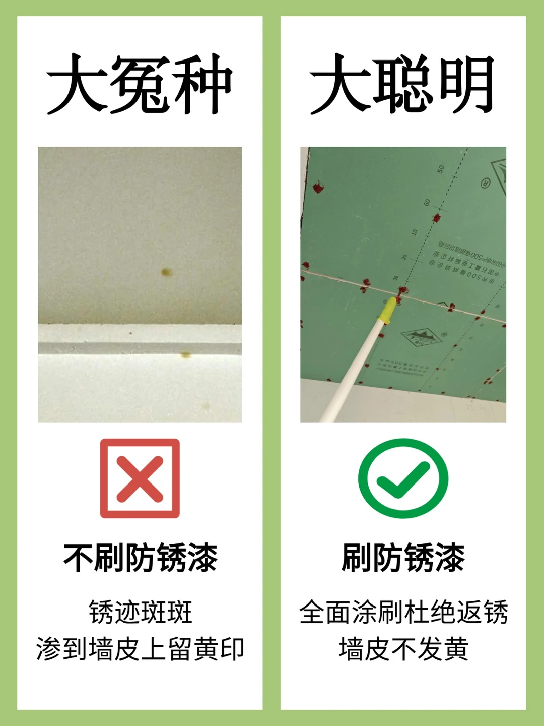 ❌ 不刷防锈漆:用不了两年就锈迹斑斑,还会渗到墙皮上留黄印