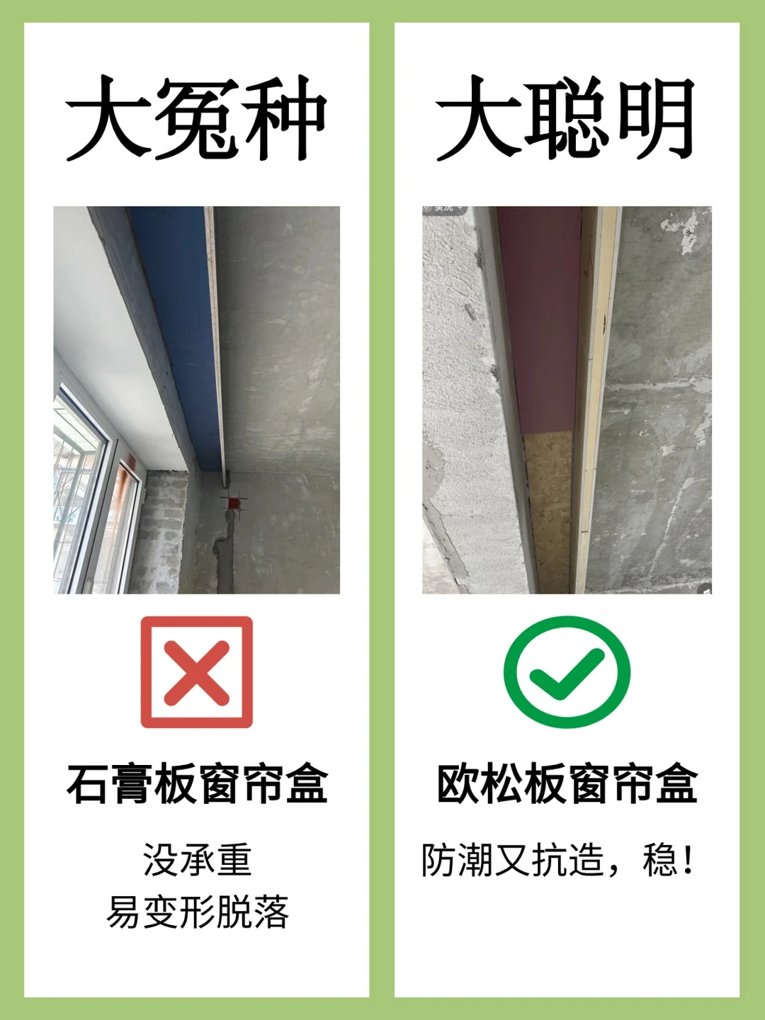 ❌ 石膏板窗帘盒:没承重,易变形脱落