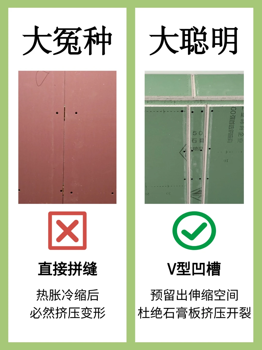 ✅ V型凹槽:预留出伸缩空间,杜绝石膏板挤压开裂