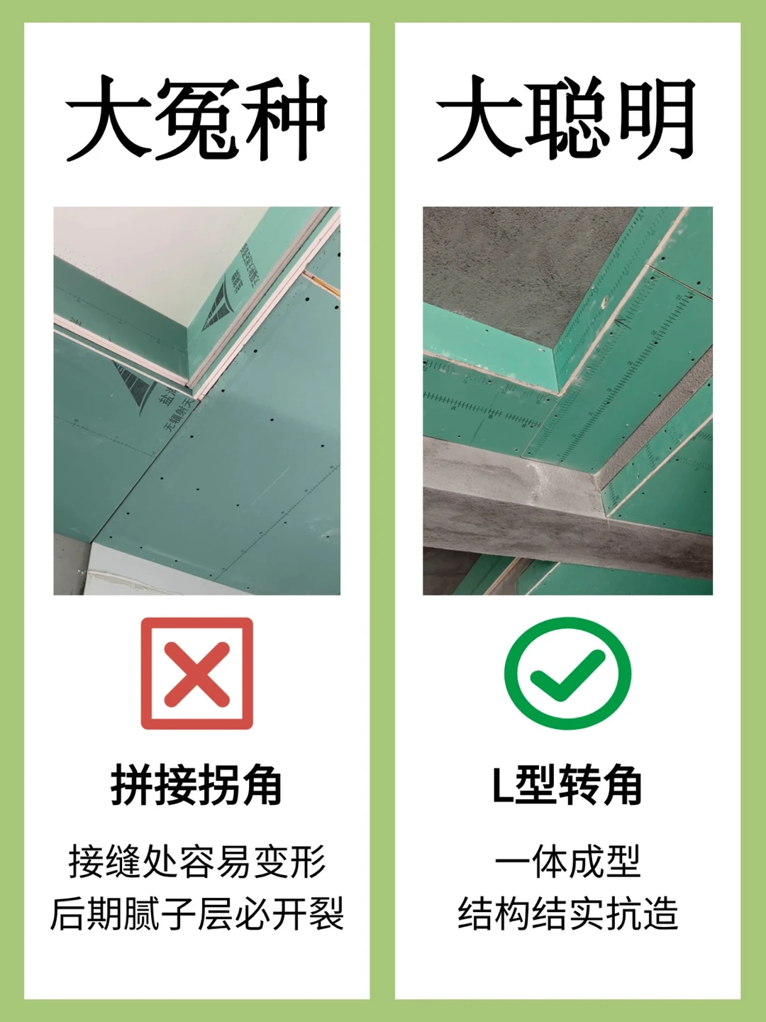 ❌ 拼接拐角:接缝处容易变形,后期腻子层必开裂