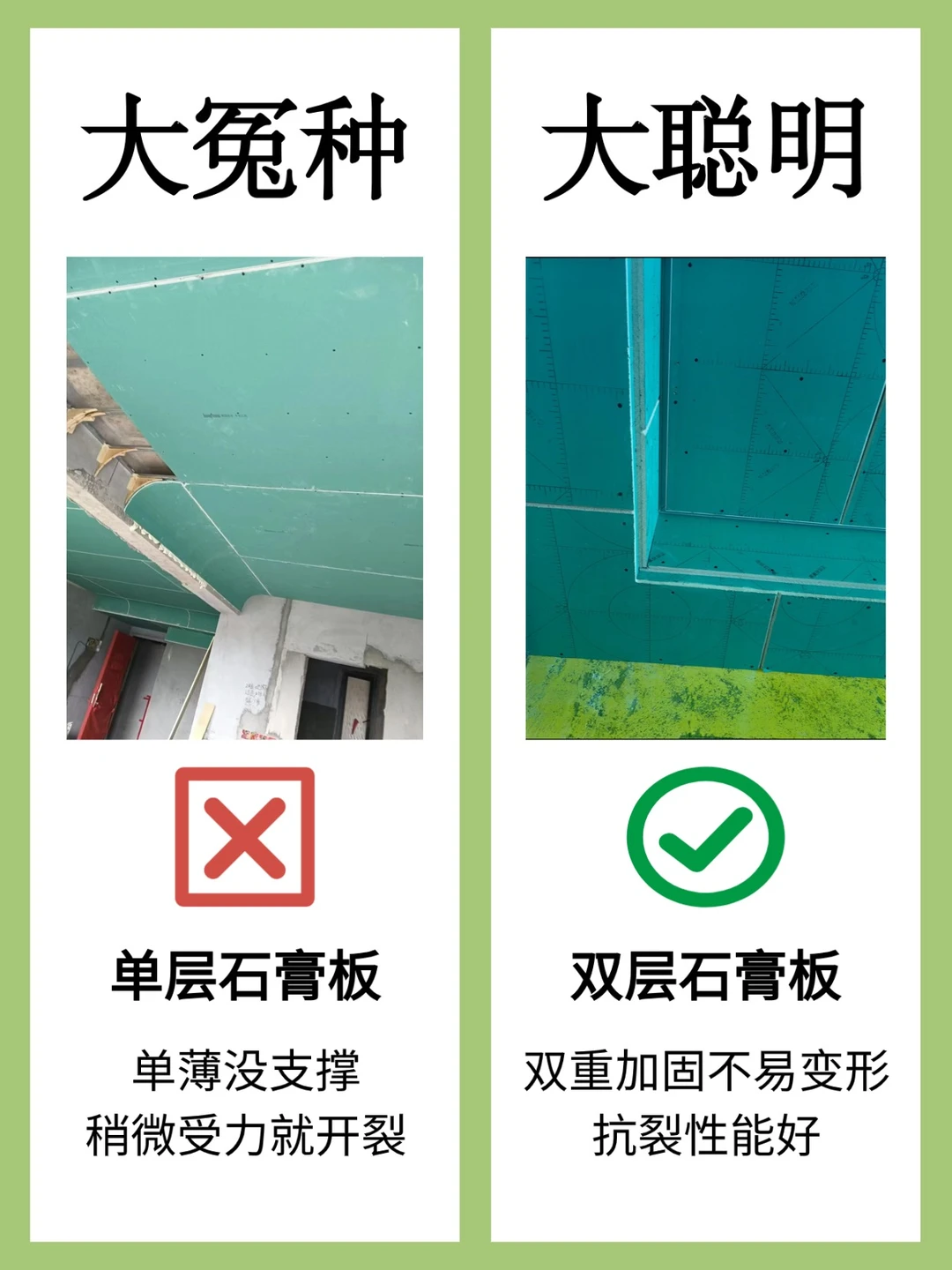 ❌ 单层石膏板:单薄没支撑,稍微受力就开裂