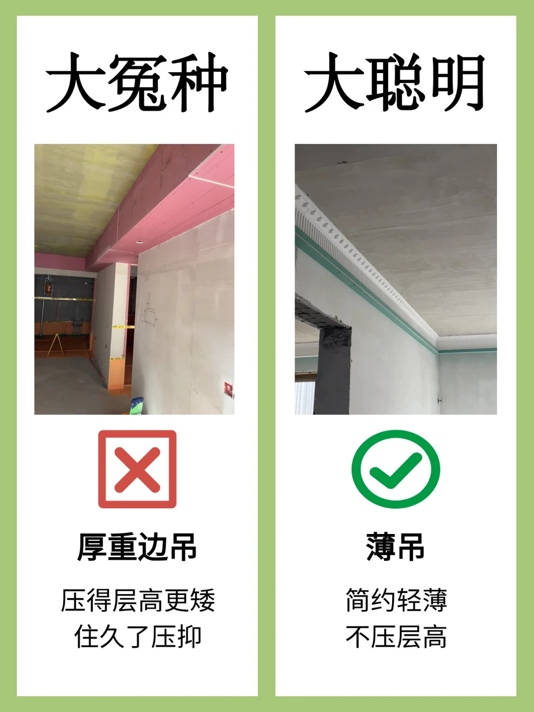 ❌ 厚重边吊:压得层高更矮,住久了压抑