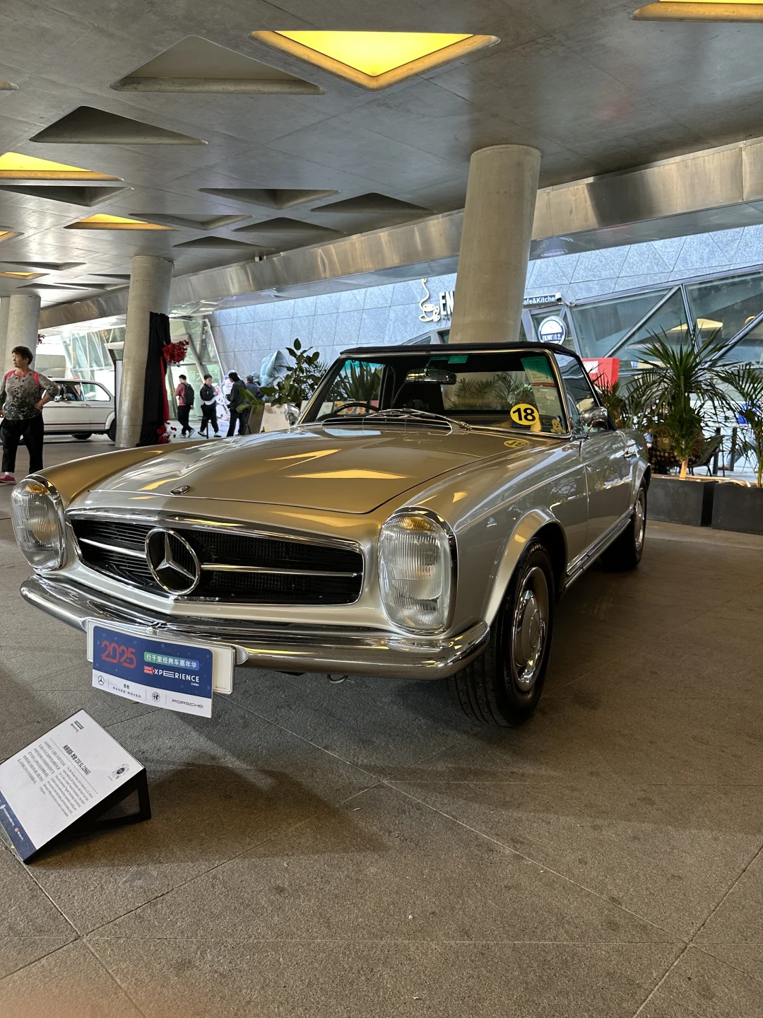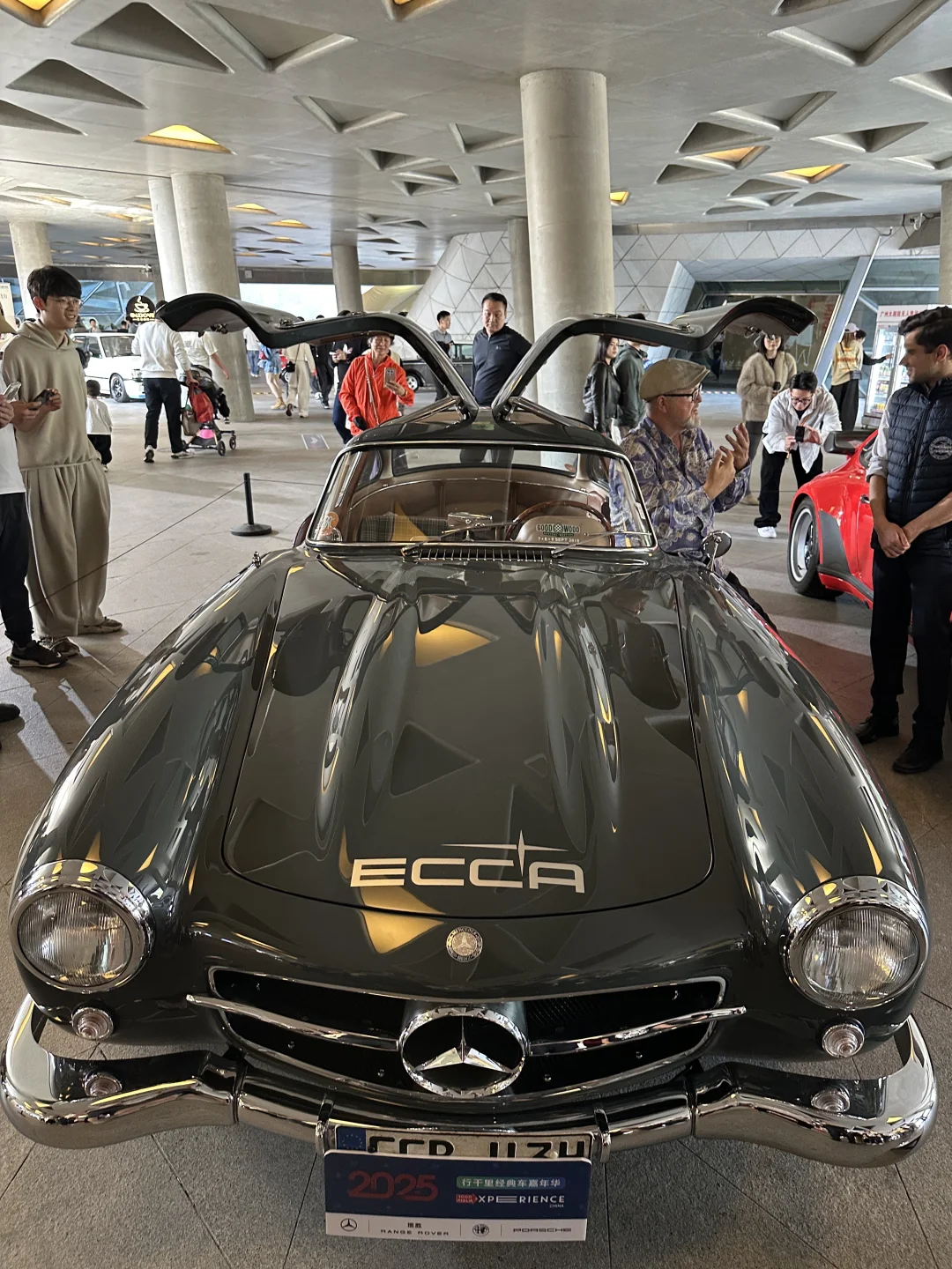 法拉利和保时捷的展区直接让我挪不开脚!红色的法拉利跑车线条流畅到犯规,阳光透过大剧院的玻璃穹顶洒在车身上,反光绝了,拍出来的照片不用加滤镜就超有大片感。还有辆蝴蝶门奔驰,现场工作人员演示了开门瞬间,蝴蝶门缓缓升起,周围车迷集体“哇”出声,我赶紧开连拍抓下这瞬间🥹