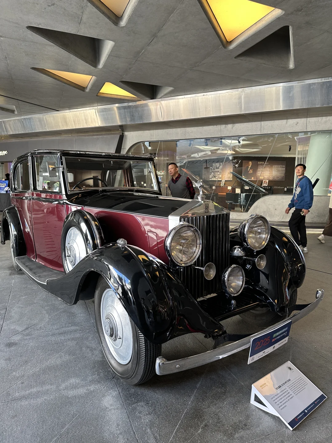 一进二楼展厅就被震撼到了!平时花钱才能看的名车,现在免费随便看,简直是车迷的殿堂级体验。最让我惊喜的是那些复古老爷车,1936年的劳斯莱斯也太有质感了,车身的金属光泽、复古的圆形大灯,细节精致到离谱,摸了摸车门的木纹装饰(工作人员说可以轻轻触碰),瞬间穿越到民国时期的豪门场景。