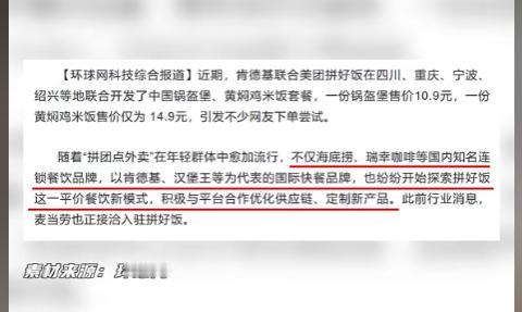 你看,拼好饭最近真是火得不行,特别是那种平价又靠谱的快餐,简直是打工人、蓝领的“救命稻草”。记得有个白领朋友跟我说:“上次和同事聊,竟然在茶水间争论的是谁的外卖更便宜。连肯德基也上了拼好饭,黄焖鸡才10.9元,一份完整的快餐,分量又大,真是物超所值!”我都快笑出来了,这就是现在的消费文化不管你是什么阶层,大家都在追求既实惠又体面的餐食。 而美团拼好饭,这个平台也真是有一手。它不仅把大品牌像肯德基、老乡鸡拉进来了,还能让这些品牌在拼好饭上推出一些原本很贵的新品。像肯德基的“大碳水”项目,针对骑手、司机和学生群体推出的这些平价餐,真的直接打中了预算有限人群的需求。 说实话,拼好饭的最大亮点就是它的低价还能保证品质,不像其他平台那样通过大幅度补贴来吸引顾客,而是通过提高运营效率,做到真正的“薄利多销”。例如“集中配送”这一模式,就让配送成本大大降低,骑手们也能多送几单,反而收入也增加了。最关键的是,商家不需要靠烧钱的补贴去吸引顾客,而是通过“标准套餐”和“集中订单”来提升利润。 这么一看,拼好饭不仅让消费者吃得实惠,商家也能赚到钱。更重要的是,这个平台在帮大家“好好吃饭”的同时,也不失去餐饮行业的责任感。低价可不是便宜货,它是一种通过精密运营和结构创新创造出来的消费新生态。你说,拼好饭不火才怪!