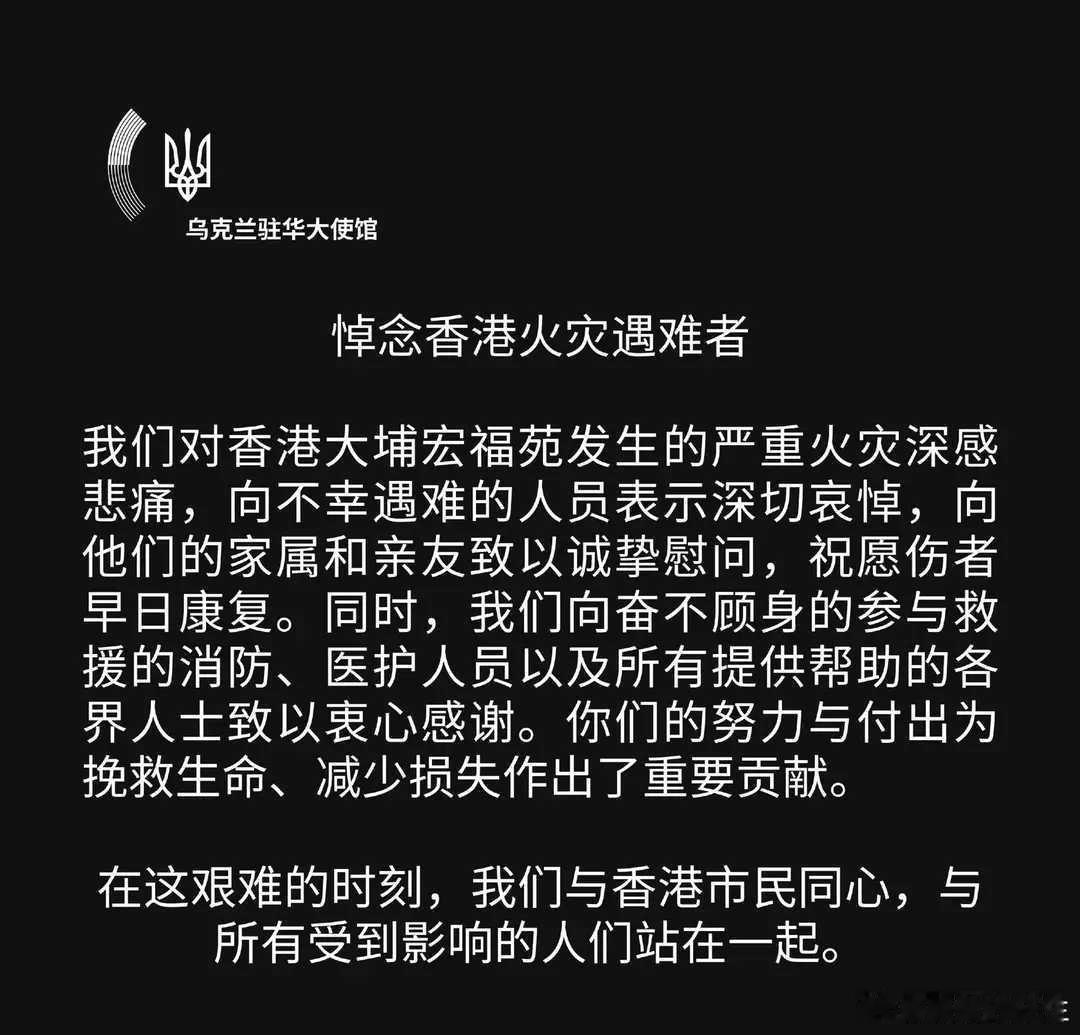 香港大火已致94人遇难乌克兰外交部向香港火灾遇难者致哀