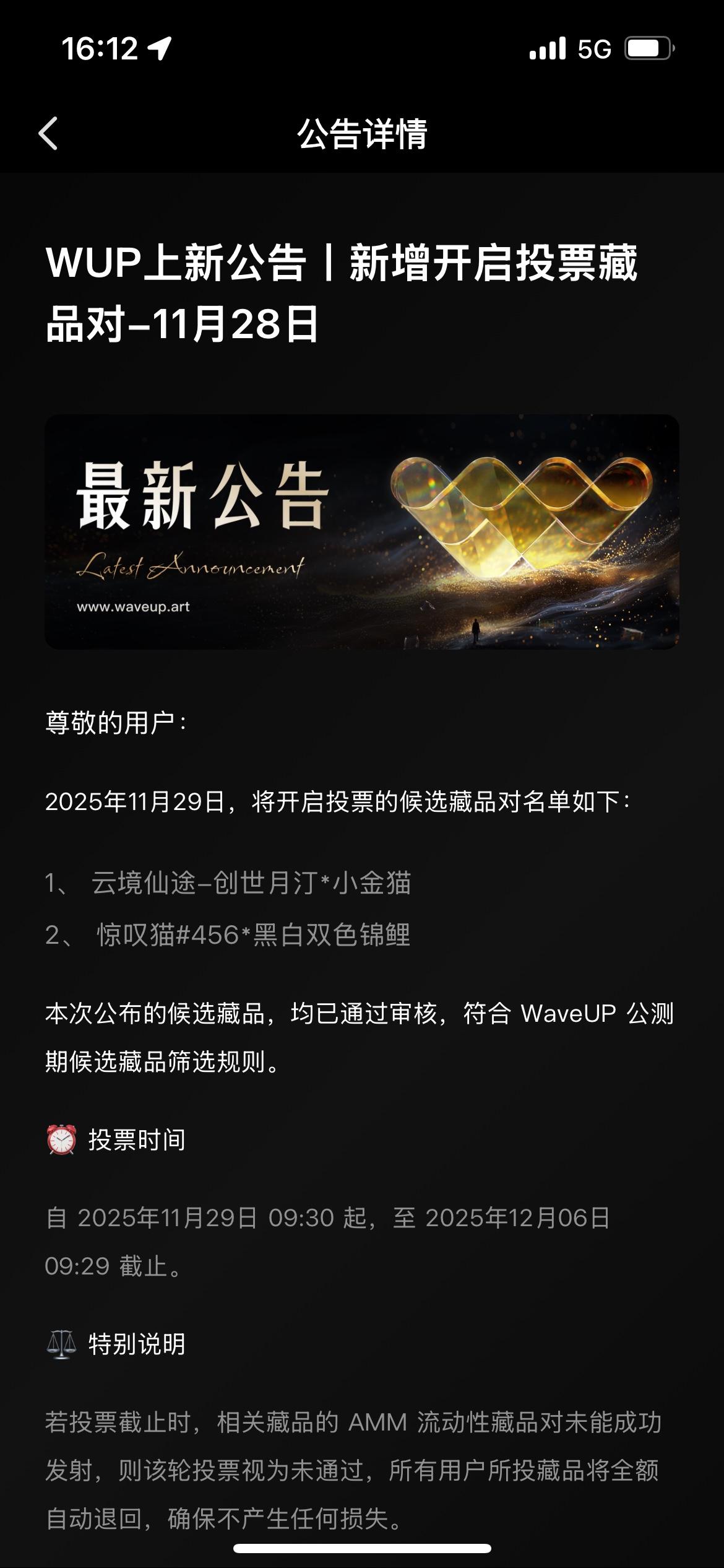 WaveUp“惊叹猫456”与“黑白鱼”配对:开启创作者赋能新纪元。 今日,WaveUp平台宣布为创作者藏品“惊叹猫456”和“黑白鱼”开启投票配对功能,这一创新举措不仅引发了社区热议,更为整个数字创作生态释放了深远而积极的信号,尤其为创作者版块带来了多重利好。 首先,这一配对机制是对创作者核心价值的深度认可与强力赋能。 将两款独立的创作者藏品进行官方推荐并交由社区投票配对,意味着平台正有意识地将流量和关注度导向创作者本身。这种“创作联动”模式,能够有效打破单个藏品的影响力局限,通过组合效应产生“1+1>2”的曝光效果,直接提升创作者的知名度与市场影响力,为创作者带来了实实在在的收益与品牌增值。 其次,它极大地激励了创作灵感与IP叙事的跨界融合。 “惊叹猫”与“黑白鱼”的配对,本身就是一个崭新的创作命题。它能激发创作者围绕这两个IP开发新的故事线、联名艺术设计甚至衍生内容,从而极大地丰富了IP的内涵与生命力。这种模式为创作者指明了一条通过IP联动、宇宙构建来实现价值放大的新路径,鼓励他们从创作之初就思考作品的延展性与协作可能性,推动创作生态从“单体创作”迈向“集体叙事”和“宇宙构建”的更高维度。 再者,此举措构建了一个可持续的创作者激励闭环。 当社区用户通过投票参与配对时,他们不仅在行使权利,更是在用行动为自己支持的创作者“投资”。这种深度参与感会显著增强粉丝与创作者之间的情感连接,转化为更强的收藏意愿与社区拥护。成功的配对案例将形成示范效应,吸引更多优秀创作者入驻WaveUp,因为他们能看到一个通过平台机制和社区力量获得成功的高效通道。这将形成一个“优秀创作者涌入→优质藏品涌现→社区活跃度提升→平台价值增长→反哺创作者”的良性循环。 最终,它标志着平台正致力于构建一个以创作者为核心的繁荣生态。 WaveUp通过此类精细化、创新性的运营手段,明确传递出其发展重心已从单纯吸引用户交易,升级为培育和服务创作者群体。一个能够不断赋能创作者、帮助他们实现商业价值与艺术梦想的平台,必将能汇聚最具活力的创作力量,从而构筑起自身最坚固的护城河。 综上所述,WaveUp为创作者藏品开启投票配对,是一次极具前瞻性的战略布局。它超越了简单的功能更新,是平台对创作者经济的一次深度挖掘与重塑,为整个数字艺术领域的创作者带来了前所未有的发展机遇与无限想象空间。鲸探藏品 鲸探数子藏品 五彩斑斓猫 惊叹猫
