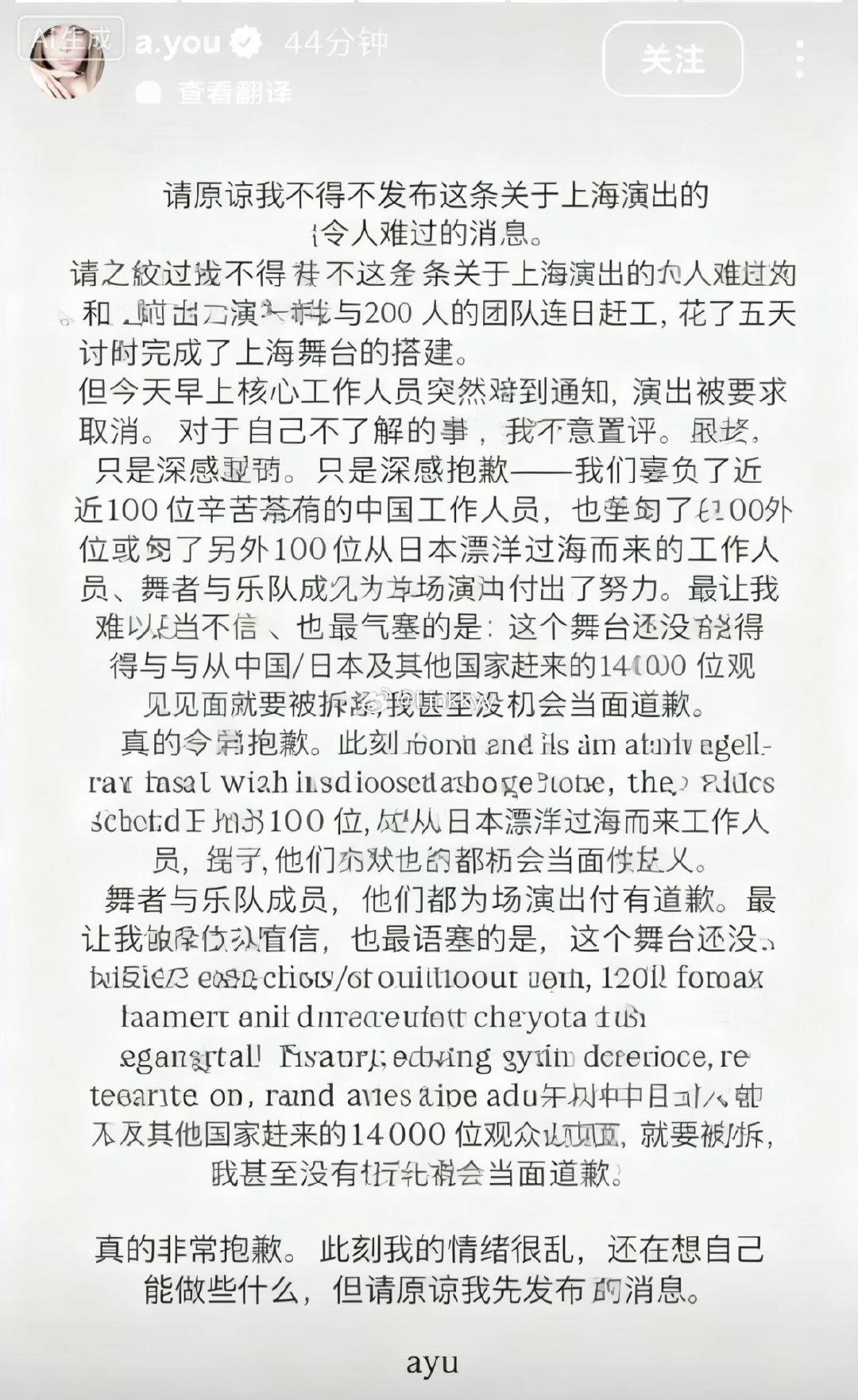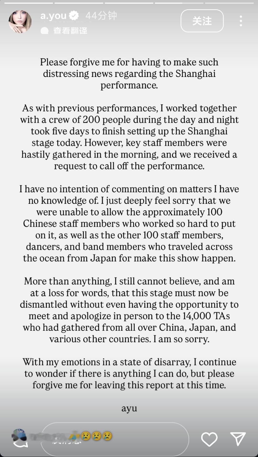 滨崎步发文道歉滨崎步发长文道歉滨崎步为上海演出取消长文道歉